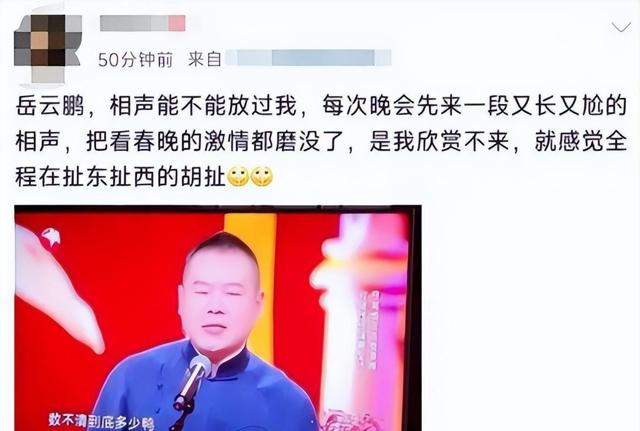 但大众对于岳云鹏的相声水平容忍度确实越来越低,甚至还有观众自发地抵制岳云鹏再上春晚。