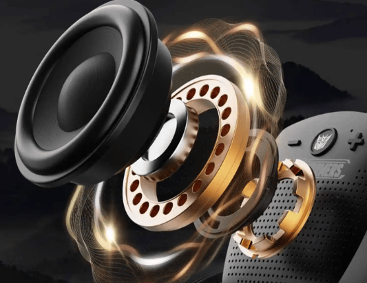 音质方面,它配备了两个48毫米全频单元,形成立体声效果,再搭配大尺寸双被动辐射器,音效厚重有力,低频表现尤为出色。