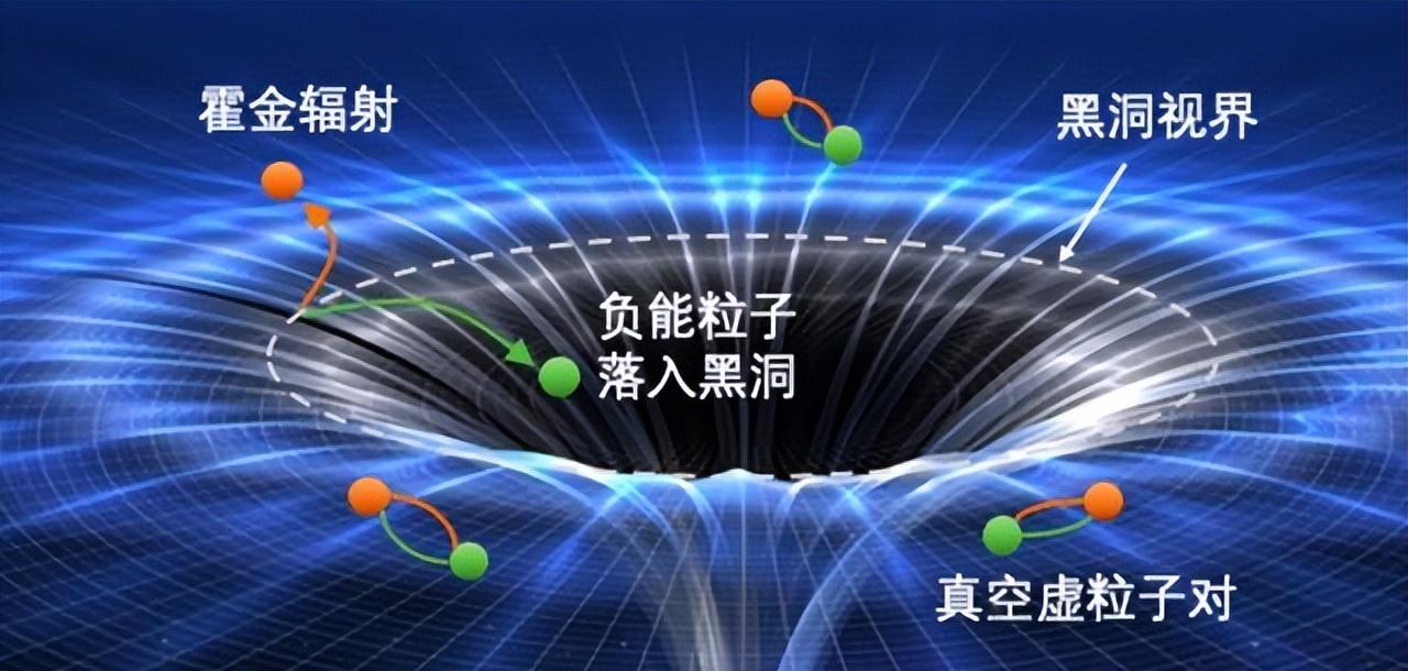 如果一颗黑洞长期没有吞噬物质,那么这颗黑洞最终也会消亡,霍金认为,当虚拟粒子出现在黑洞视界边缘时,可能会出现4种情况,1、虚粒子对正常湮灭,2、两个虚粒子同时被黑洞吞噬,3、负虚粒子被黑洞吞噬,正虚粒子逃离,4、正虚粒子被黑洞吞噬,负虚粒子逃离。根据霍金计算得出,在这4种情况下,第三种情况出现的概率是最大的,而负虚粒子携带了负能量,因此在黑洞吞噬负虚粒子之后,它的能量就减少了,而这种机制被称为是霍金辐射。他认为,黑洞最终会通过霍金辐射不断地蒸发,最终随着时间流逝,宇宙中所有的黑洞都会蒸发掉。这个时候宇宙中任何物质都没有了,宇宙就变成一片死寂的空间。