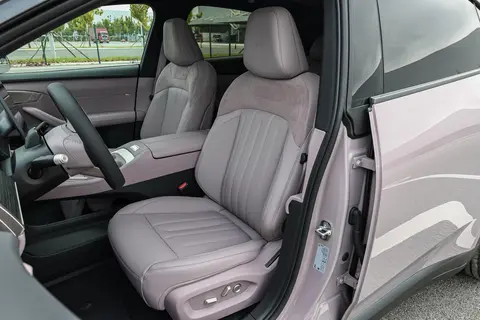 进入车内,17.2 英寸的中控屏幕成为视觉焦点,3K 分辨率让每一处细节都清晰可辨,无论是导航地图的缩放还是影音内容的播放,都能带来细腻的视觉体验。内饰整体采用简约设计语言,却在材质选择上毫不妥协,皮质方向盘的握感温润细腻,支持上下前后调节及电动调节功能,让不同体型的驾驶者都能找到舒适的操控姿势。电子式怀挡的设计堪称空间利用的典范,它巧妙地释放了中控台下方的区域,使得前排脚部空间更显通透,随手放置包包或文件时也更加方便。13 英寸抬头显示系统将时速、导航等关键信息直接投射在前挡风玻璃上,驾驶者无需低头即可获取信息,大大提升了行车安全性。