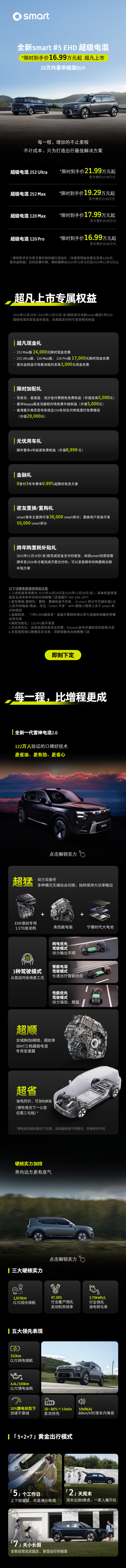 20W以内的的市场是真的卷,刚刚新上市的smart精灵5号超级电混,绝对是一匹黑马,限时16.99万起,甚至说是#20万内豪华插混唯一选择#都不为过。