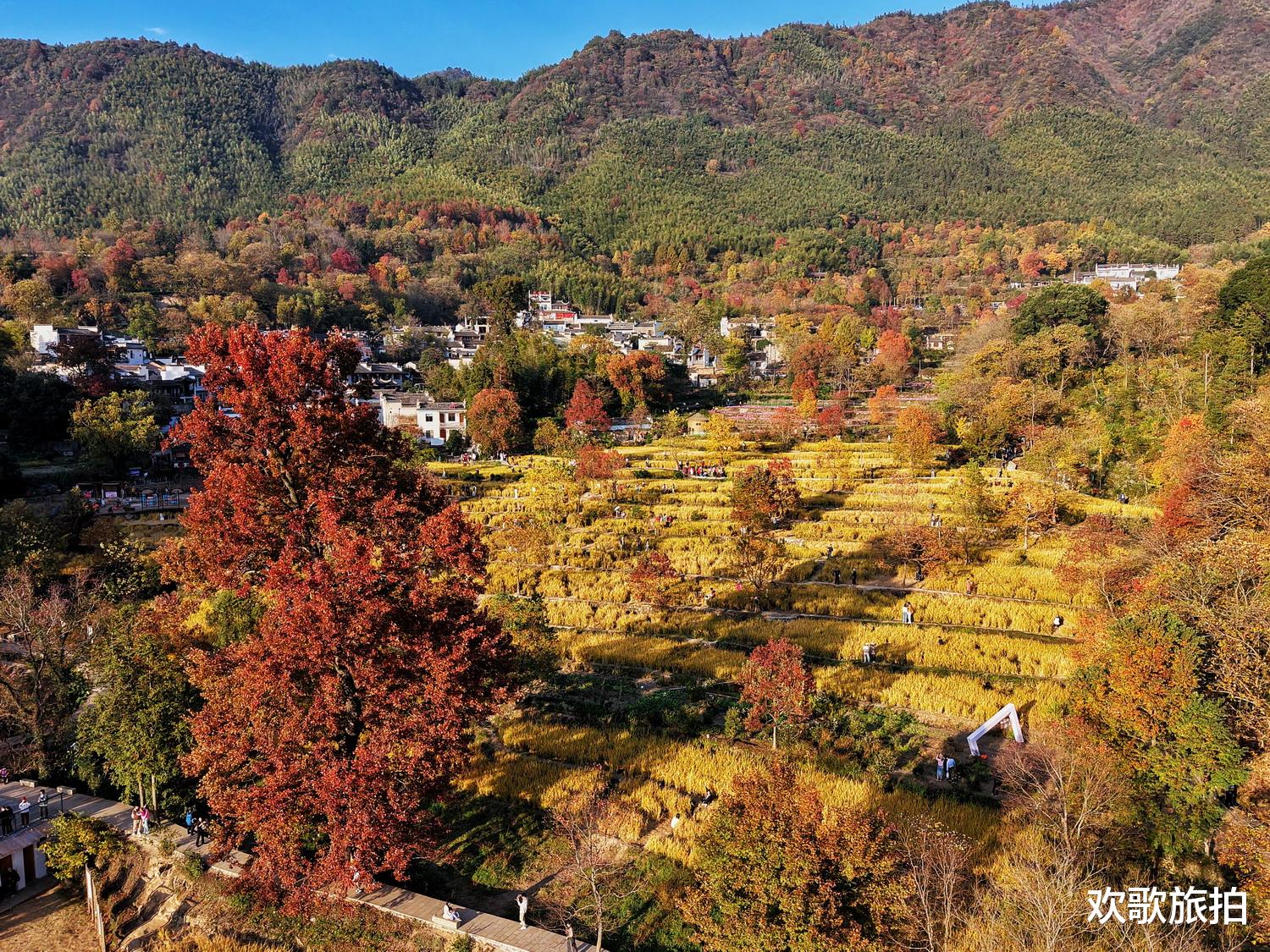 深秋色彩斑斓与唯美的徽派建筑群交相辉映
