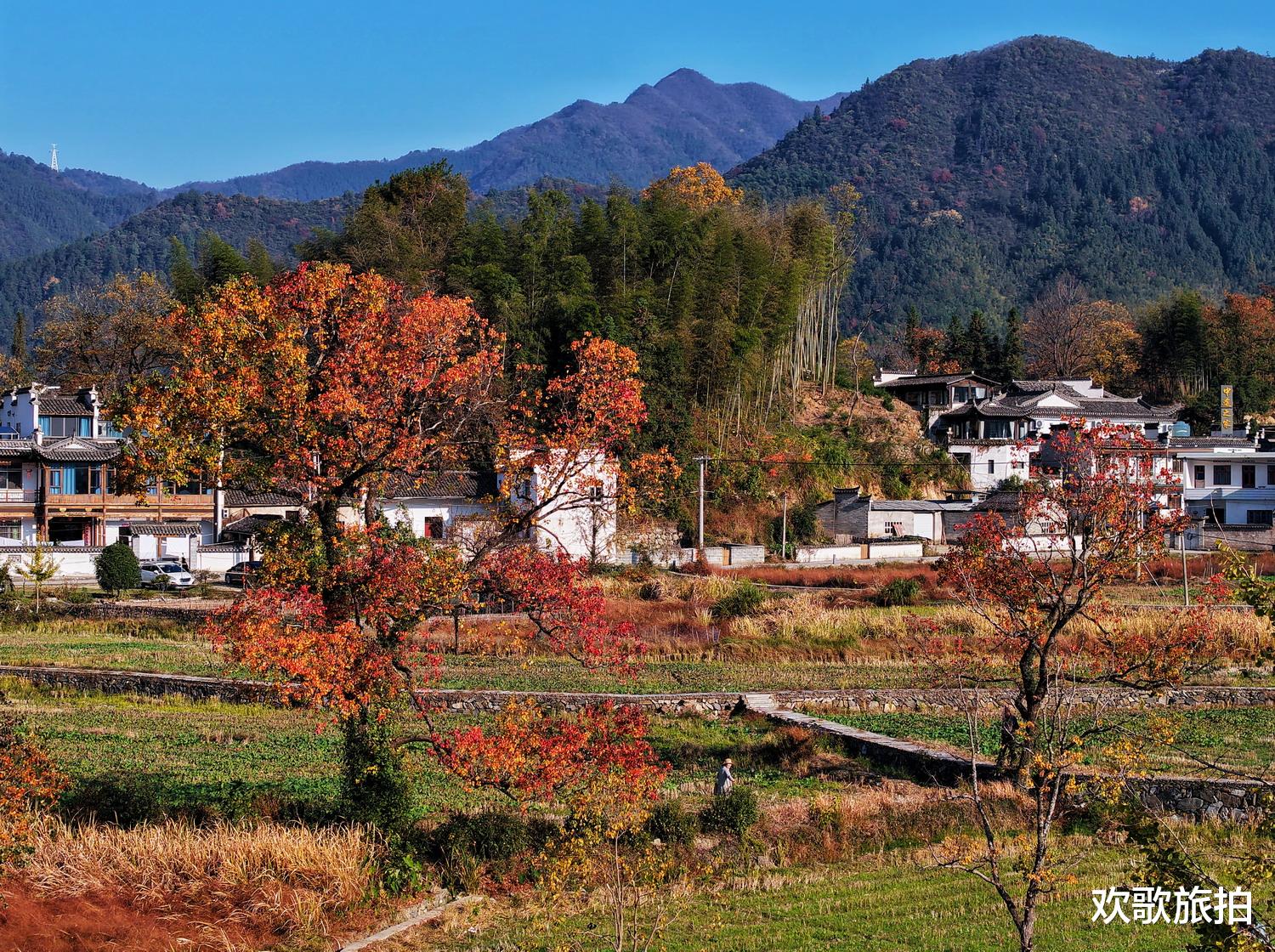 秋色斑斓 粉墙黛瓦掩映