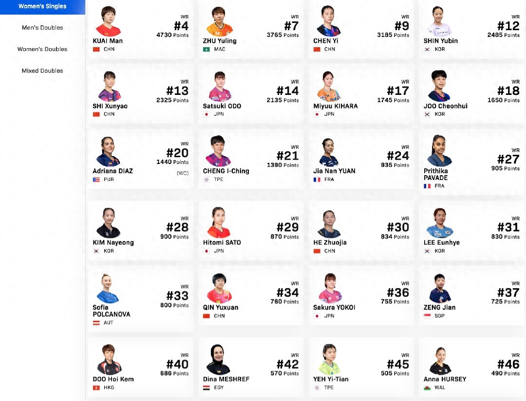 蒯曼在WTT球星挑战赛多哈站的比赛当中是头号种子选手,朱雨玲是2号种子选手,双方在决赛才会相遇。这次球星挑战赛还是有很多高手报名参赛,申裕斌、金娜英、朱芊曦这三个韩国队的主力选手都一起参赛,还有韩国队的梁夏银、金成珍这些非主力选手也报名了,韩国队的主力选手经常在同一届赛事提前相遇,这次这三个主力选手很有可能分到同一小半区。