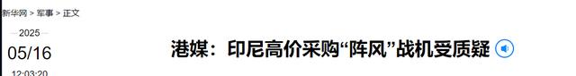 新华网:港媒:印尼高价采购“阵风”战机受质疑 2025-05-16