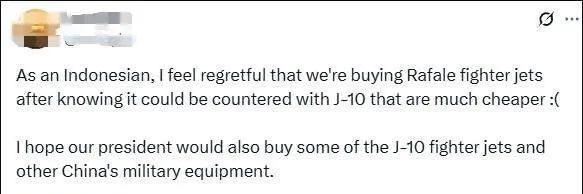 对此,印尼网友在国外平台上表示,印尼政府不如多买一些歼-10在内的中国军事装备。