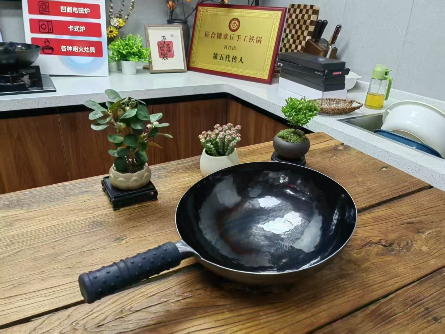 2. 千锤百炼:历经七道热锻、五道冷锻,800℃高温下猛火塑形,降温后精敲修型,数万次锤击让锅体密度飙升,厚度误差控制在 0.2 毫米内。锅面的鱼鳞纹可不是装饰,这是物理不粘的关键密码。