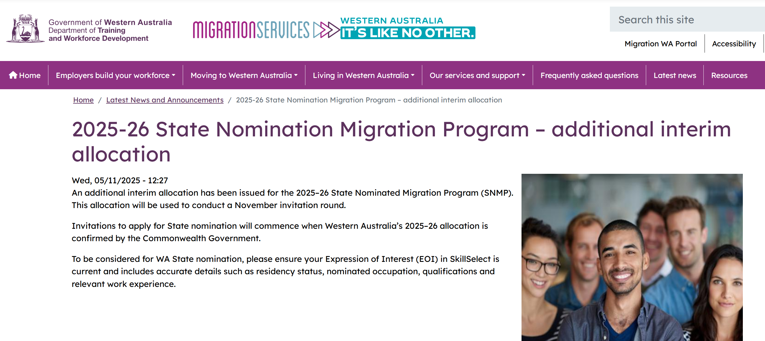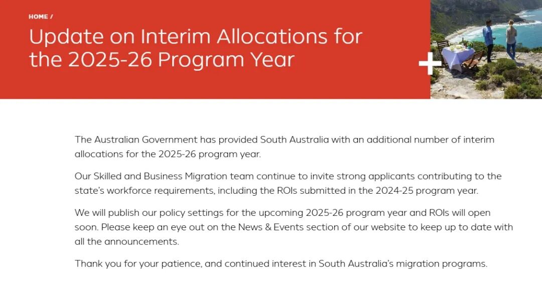 虽然澳大利亚政府还未给出2025-26财年的完整州提名配额(最终配额预计将在未来几周内确认),但已向各州和领地提供了临时配额以外的一些提名名额。