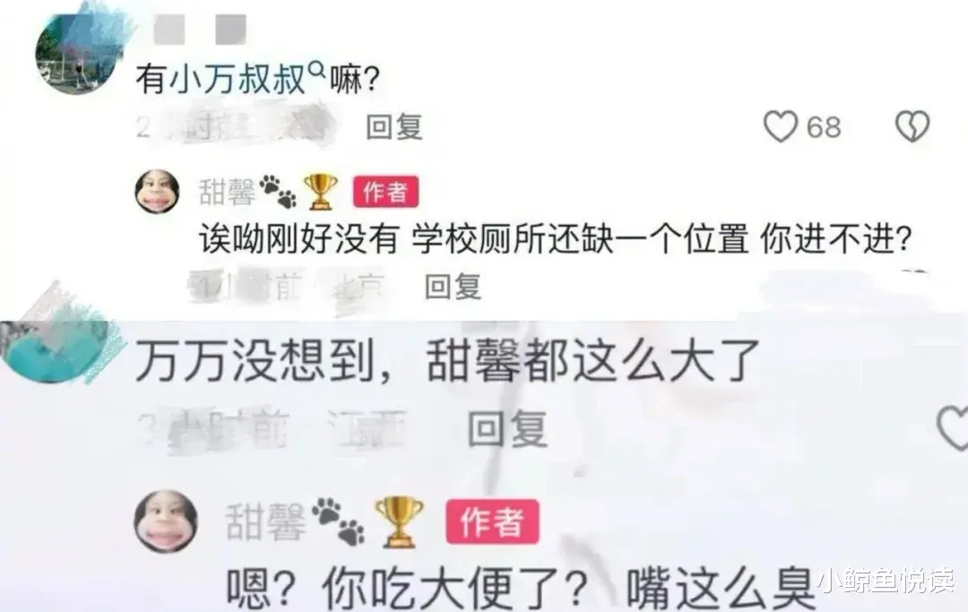 而从小就出名的甜馨遭遇的不止身边人的恶意,还有来自网络上的。