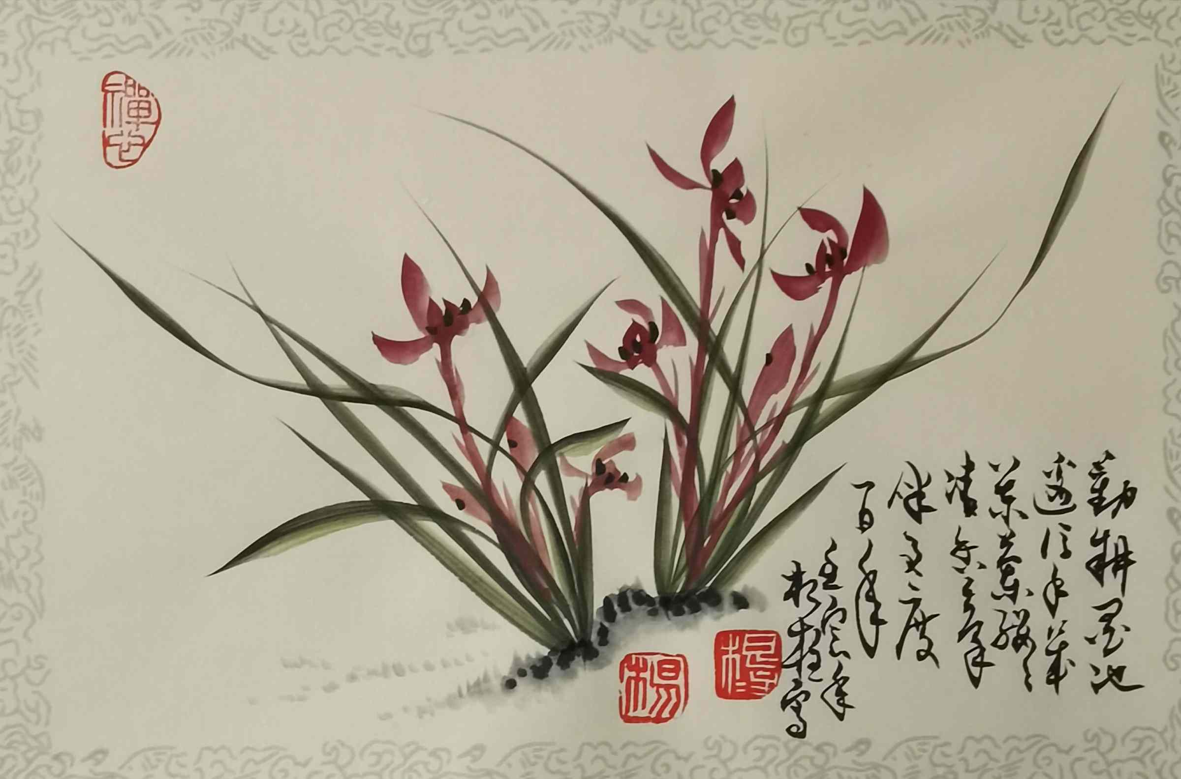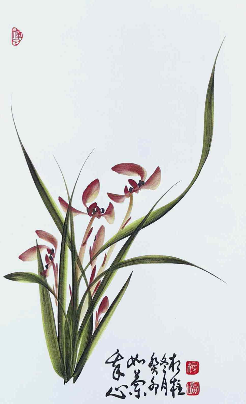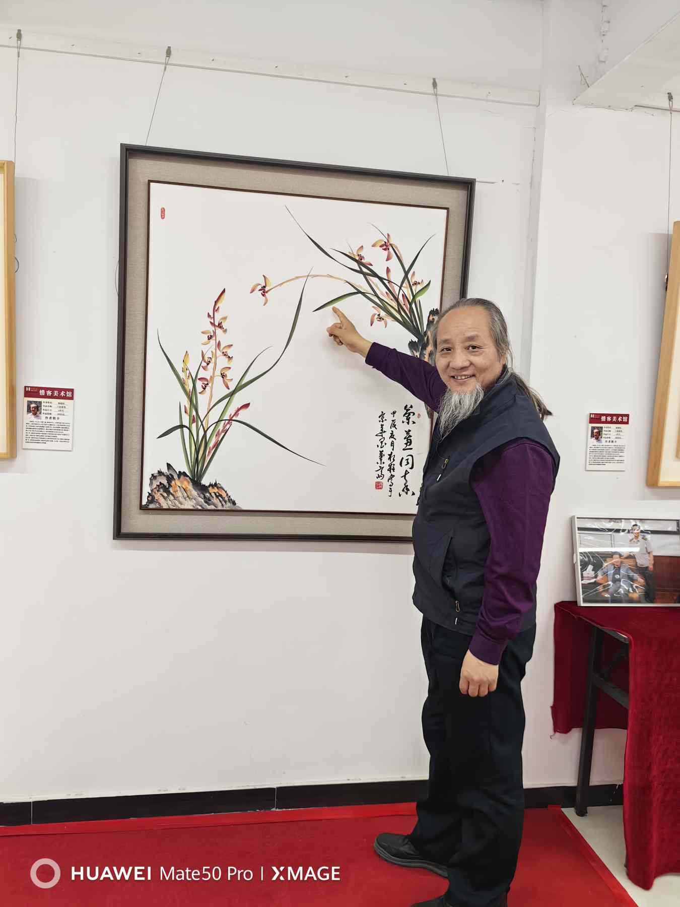 2006年退休后,杨根柱重拾绘画初心,从爱好者蜕变为专业画家。他深研传统又突破常规,开创“写意工笔兰花艺术”与“九叶分(九笔兰)”两大独特技法:前者以写意笔法达工笔细腻,一笔双色、墨韵层次丰富;后者以九笔勾勒兰草,极简中见万千姿态,拓宽兰花绘画表现维度。他还打破题材局限,创作270cm×70cm横幅巨作,以近两米长兰叶赋予兰花磅礴气势,颠覆传统小品印象。