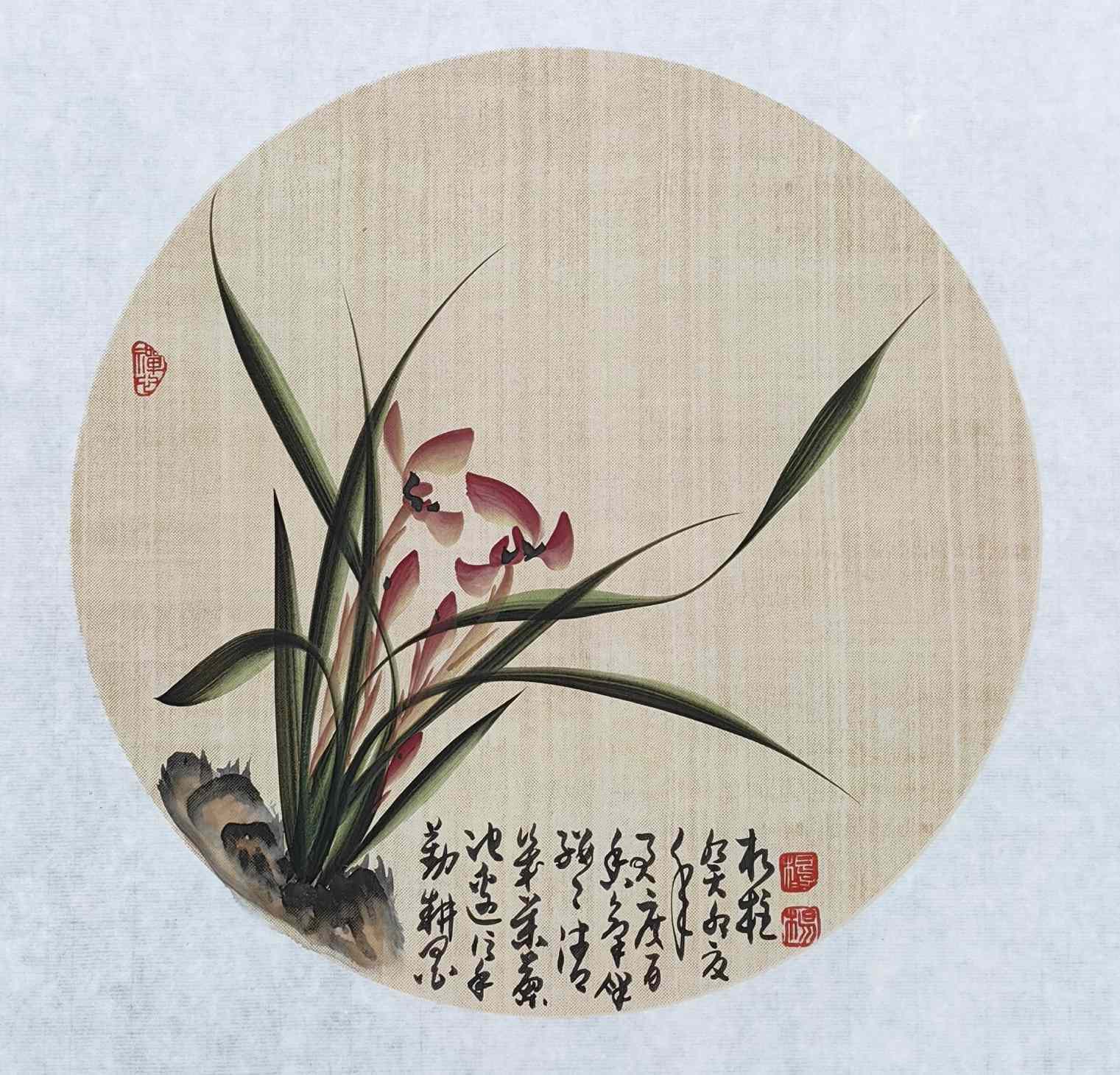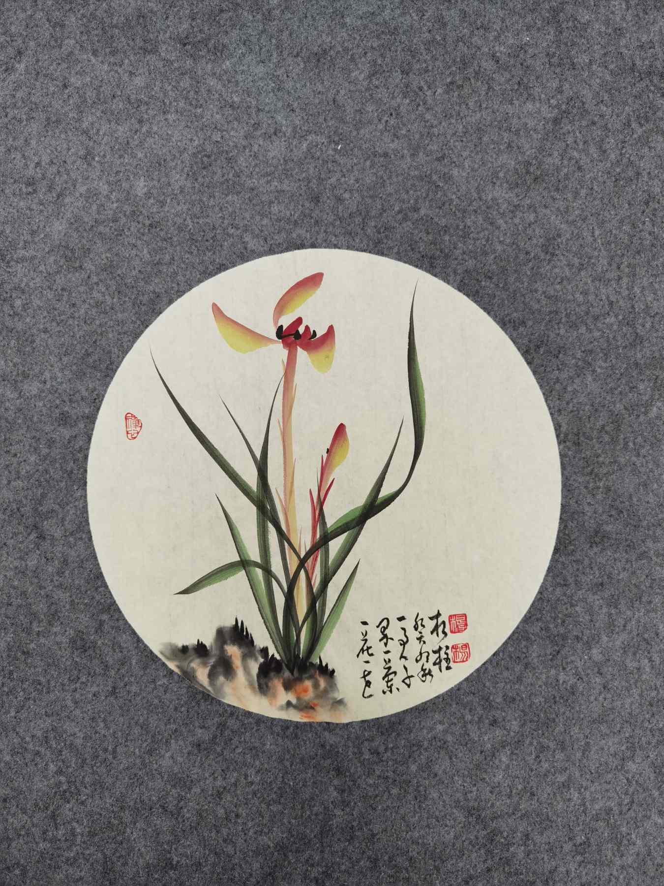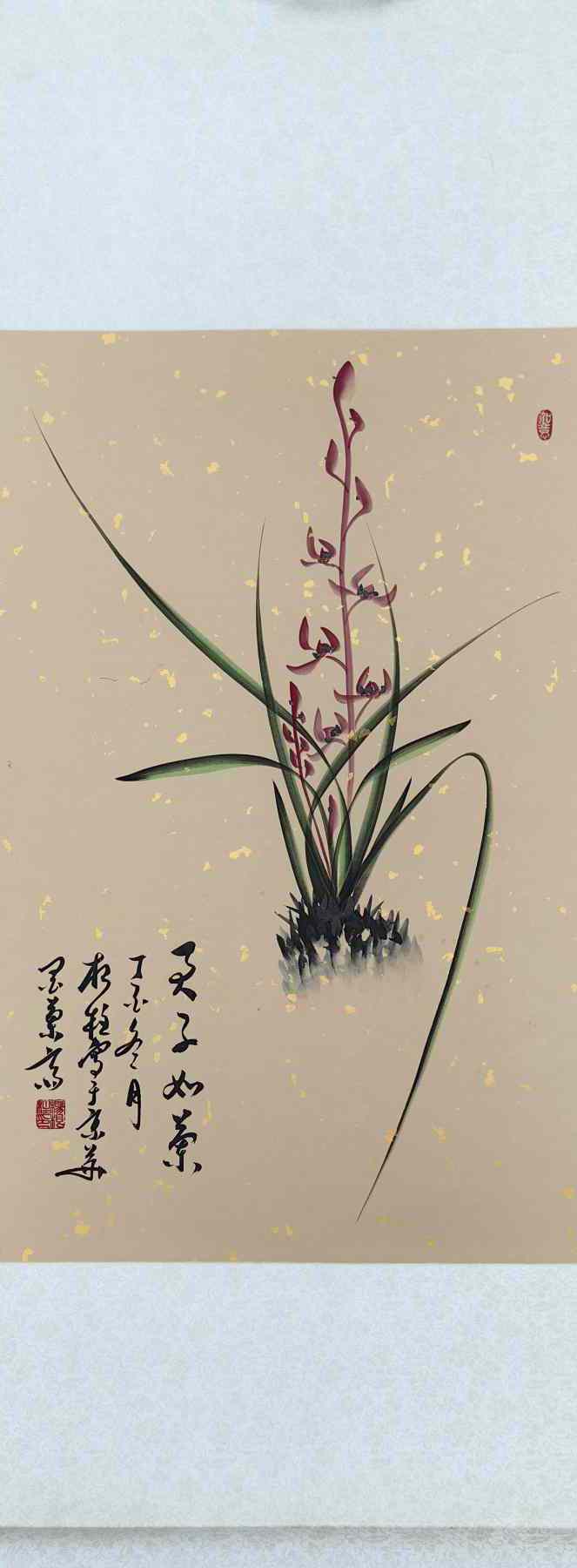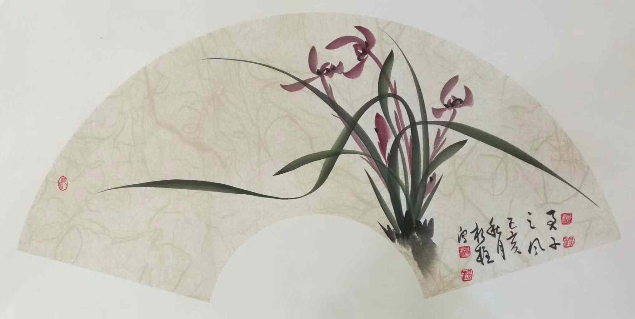 2006年退休后,杨根柱重拾绘画初心,从爱好者蜕变为专业画家。他深研传统又突破常规,开创“写意工笔兰花艺术”与“九叶分(九笔兰)”两大独特技法:前者以写意笔法达工笔细腻,一笔双色、墨韵层次丰富;后者以九笔勾勒兰草,极简中见万千姿态,拓宽兰花绘画表现维度。他还打破题材局限,创作270cm×70cm横幅巨作,以近两米长兰叶赋予兰花磅礴气势,颠覆传统小品印象。