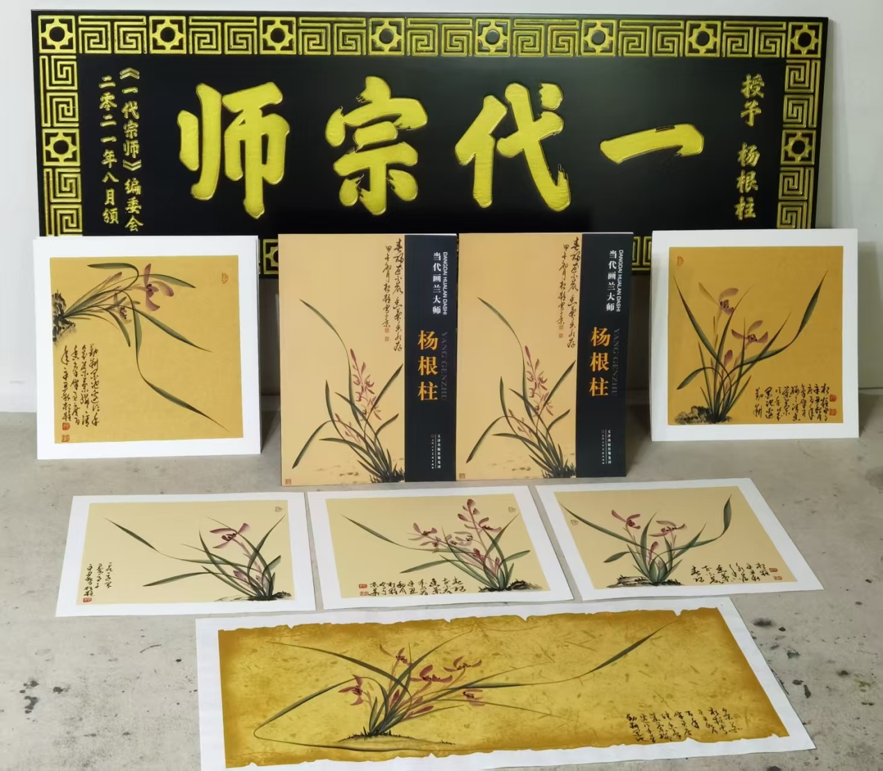 其艺术成就广受认可:2016年《当代画兰大师杨根柱》由天津人民美术出版社出版,次年被国家图书馆等数十家机构馆藏;2023年获央视频13分钟专题采访,人民日报全媒体平台专题报道并将其成就载入《中国美术通史》。网友亦以十七首诗文盛赞其“一笔双色九叶兰,白石若见恐难眠”的艺术魅力。