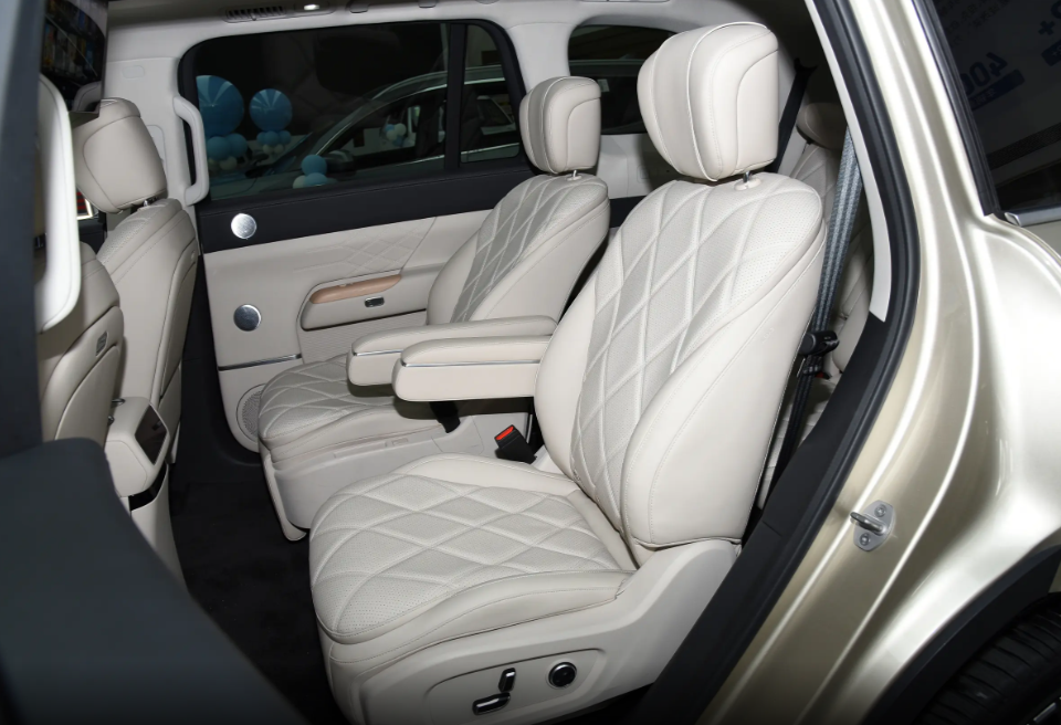 车尾形态饱满敦厚,贯穿尾灯看似平平无奇,实则点亮之后内有乾坤,左右两侧有复杂的图案设计,至于尾灯以下部分就是大面积留白设计。开启后备箱,一个规整的储物空间呈现在面前,即便在六员满座的情况下,后备箱内也能轻松收纳两三个登机箱。后备箱内集成用于调节后排座椅的按键,操控起来非常简单,平常不坐那么多人的时候,完全可以将第三排座椅收起来,将它当作一个大四座SUV使用。