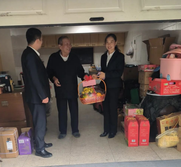 物业工作人员到业主家中走访慰问,每到一处,工作人员都会亲切地为老人们送上诚挚的节日问候及慰问品。当水果被一篮篮送到业主手中时,老人们感动不已,纷纷感谢物业的关心与温暖,赞扬物业的贴心服务。老人们一个个笑意挂在嘴角,脸上洋溢愉悦的笑容,我们亲切的叮嘱老人们天冷了注意保暖,注意身体健康,让他们真切地感受到物业的温馨和关爱。