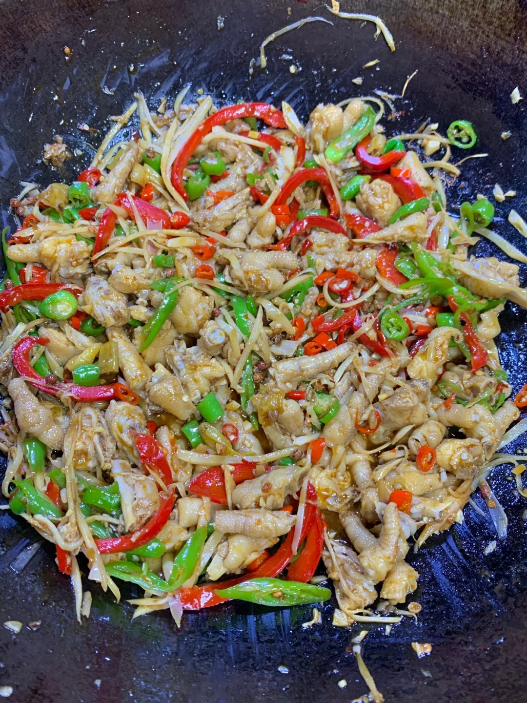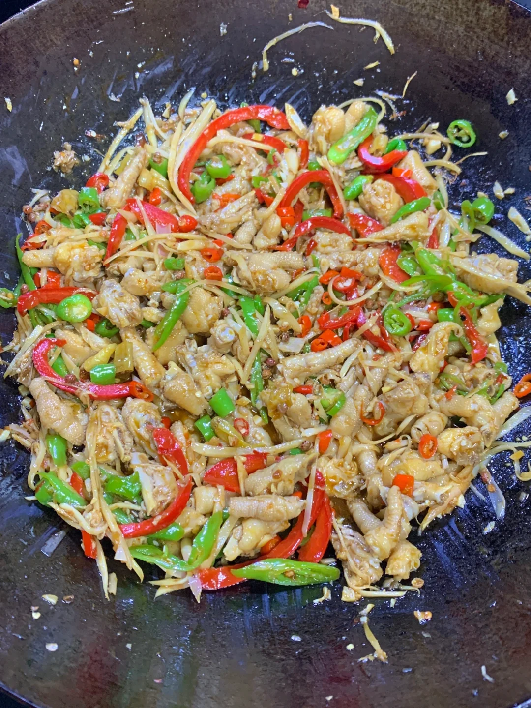 食材:鸡爪、仔姜、小米辣、二荆条、红甜椒、泡椒、生姜、蒜、花椒