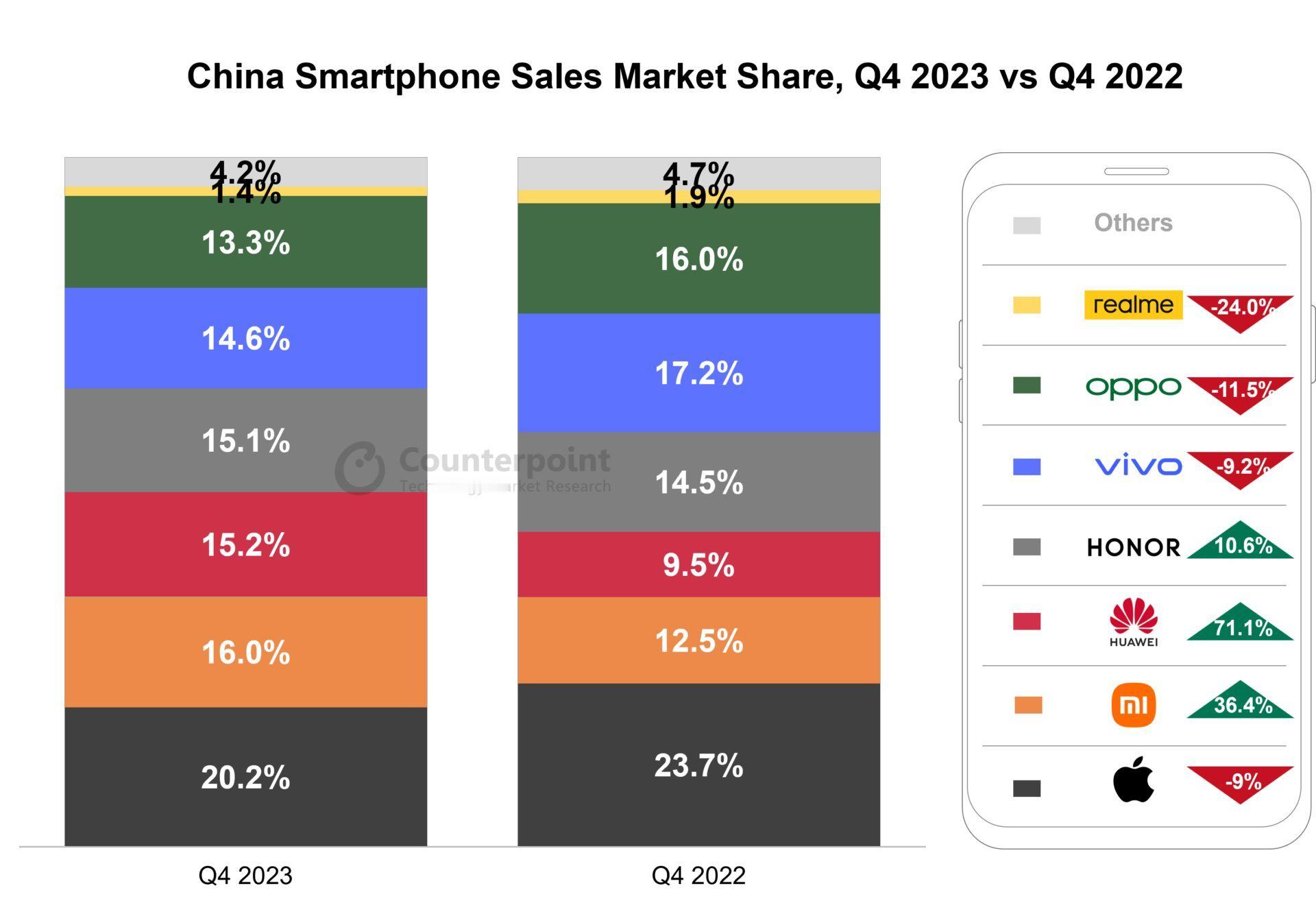 【Counterpoint Research公布2023年全年及第4季度我国智能手机销量报告】