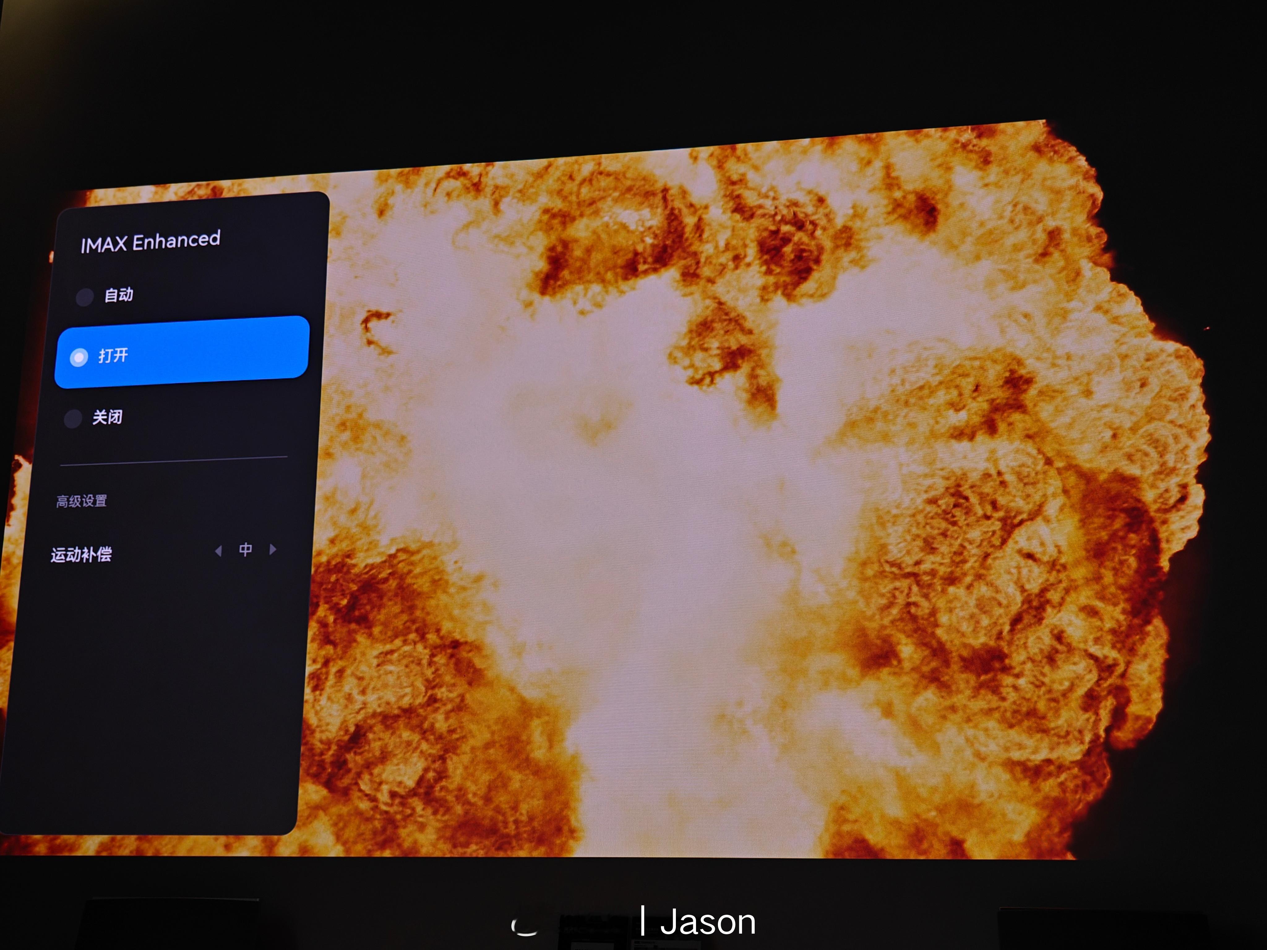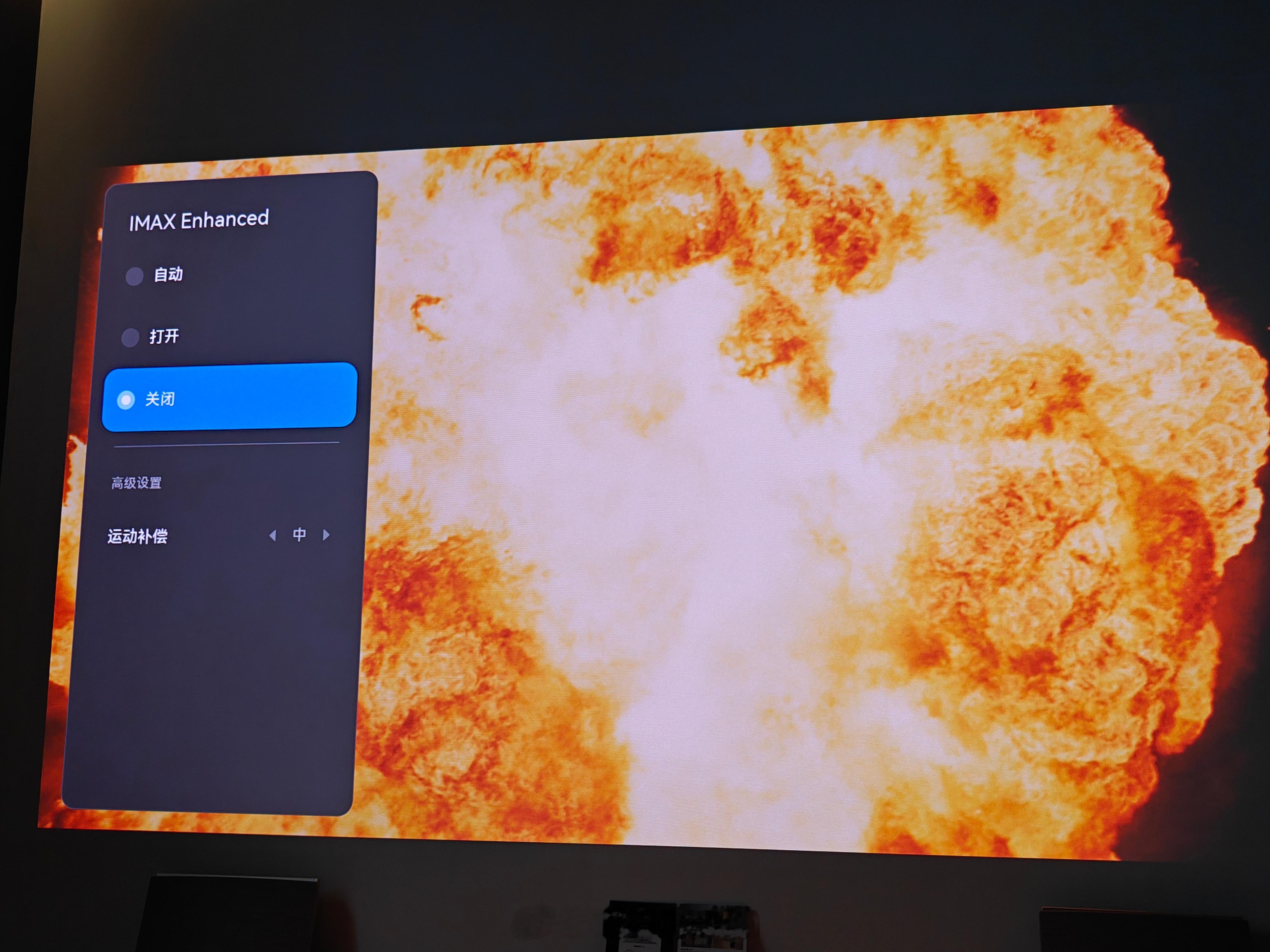 现场还直观对比了 IMAX Enhanced 模式的开启/关闭状态,可以看到开启 IMAX 模式之后,画面的对比度和明暗动态范围都有了非常直观的变化,在 IMAX 模式下观看杜比视界的影片,的确堪比影院的观影感受了。