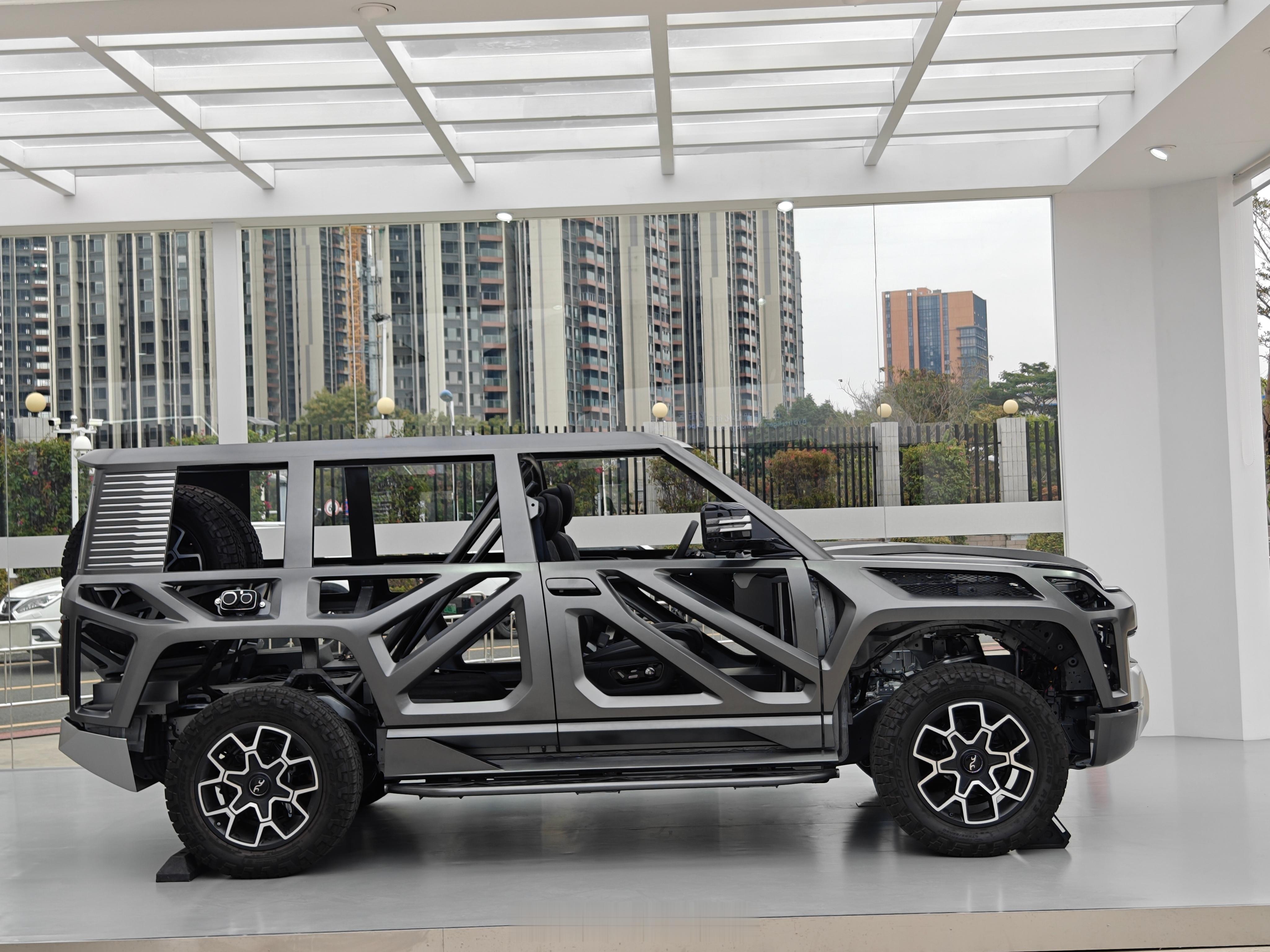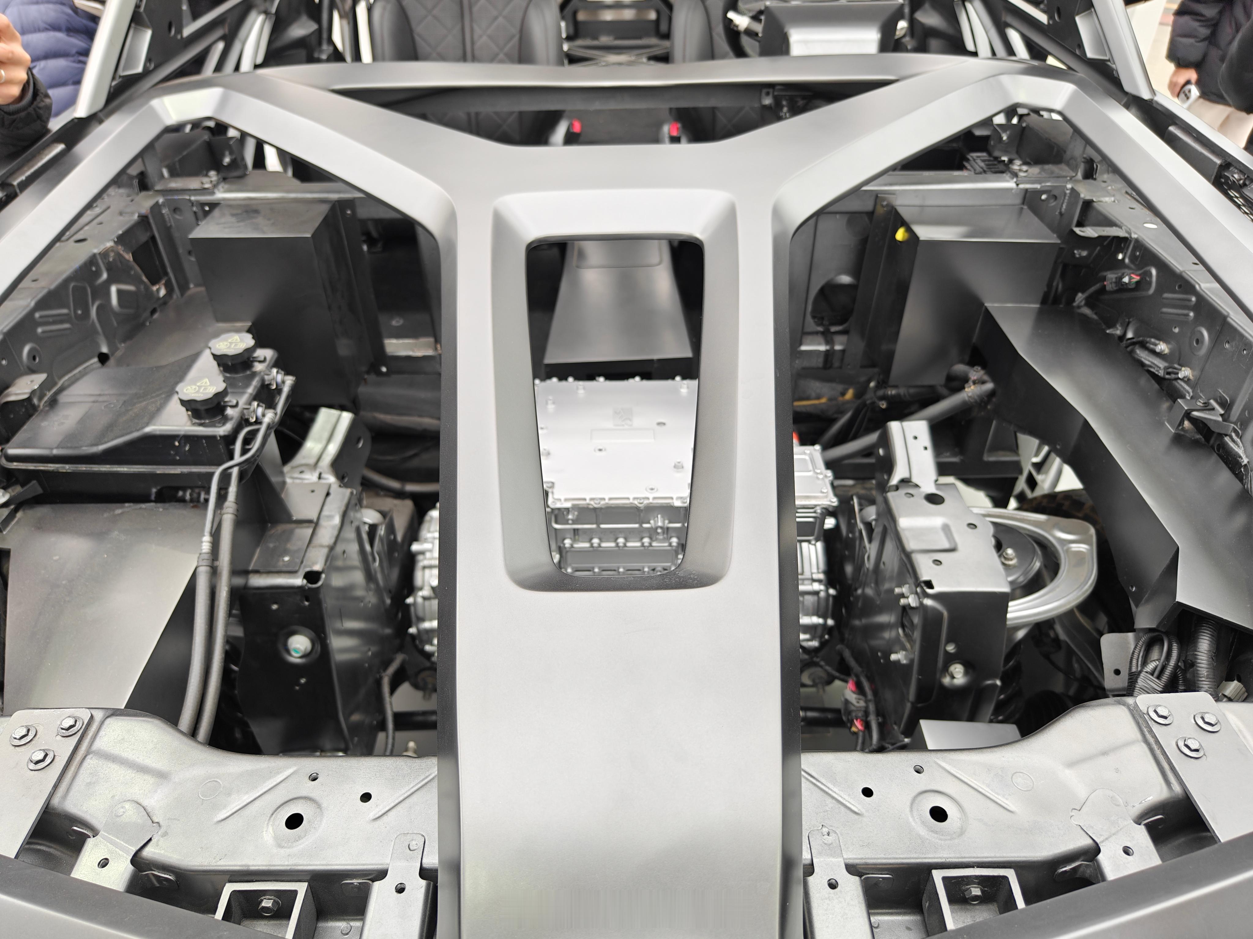 于是,我们现在眼前的这部「易四方概念车」拆除了制动模块和转向模块,通过感知、控制、执行的三路协同,让整车单靠四个轮边电机来完成制动和转向等功能。