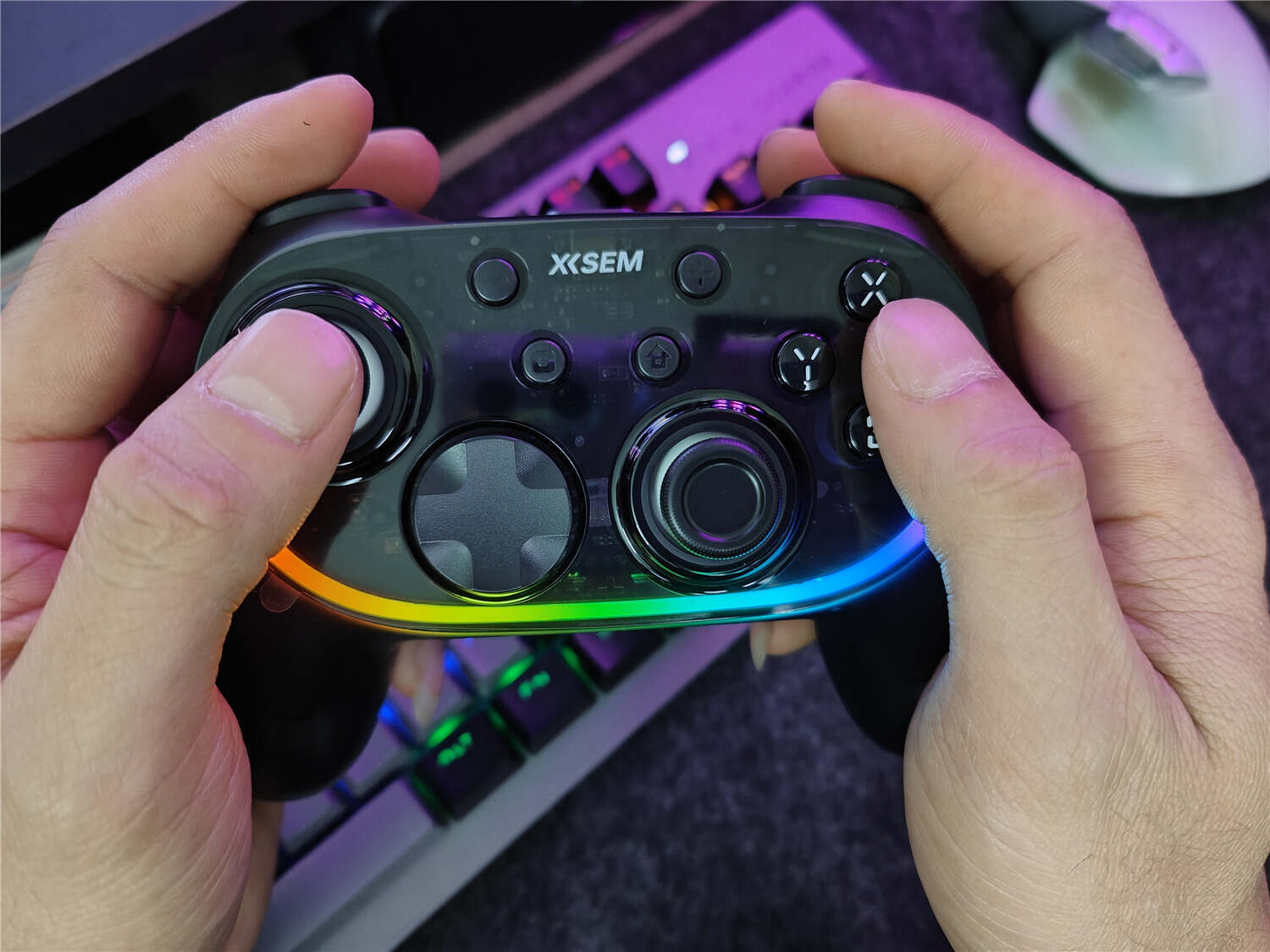 长时间游戏也不会产生明显的手部疲劳,握感更加稳固。手柄的防滑涂层和RGB幻彩灯效,让它不仅在性能上无可挑剔,在视觉美学上也十分出色。