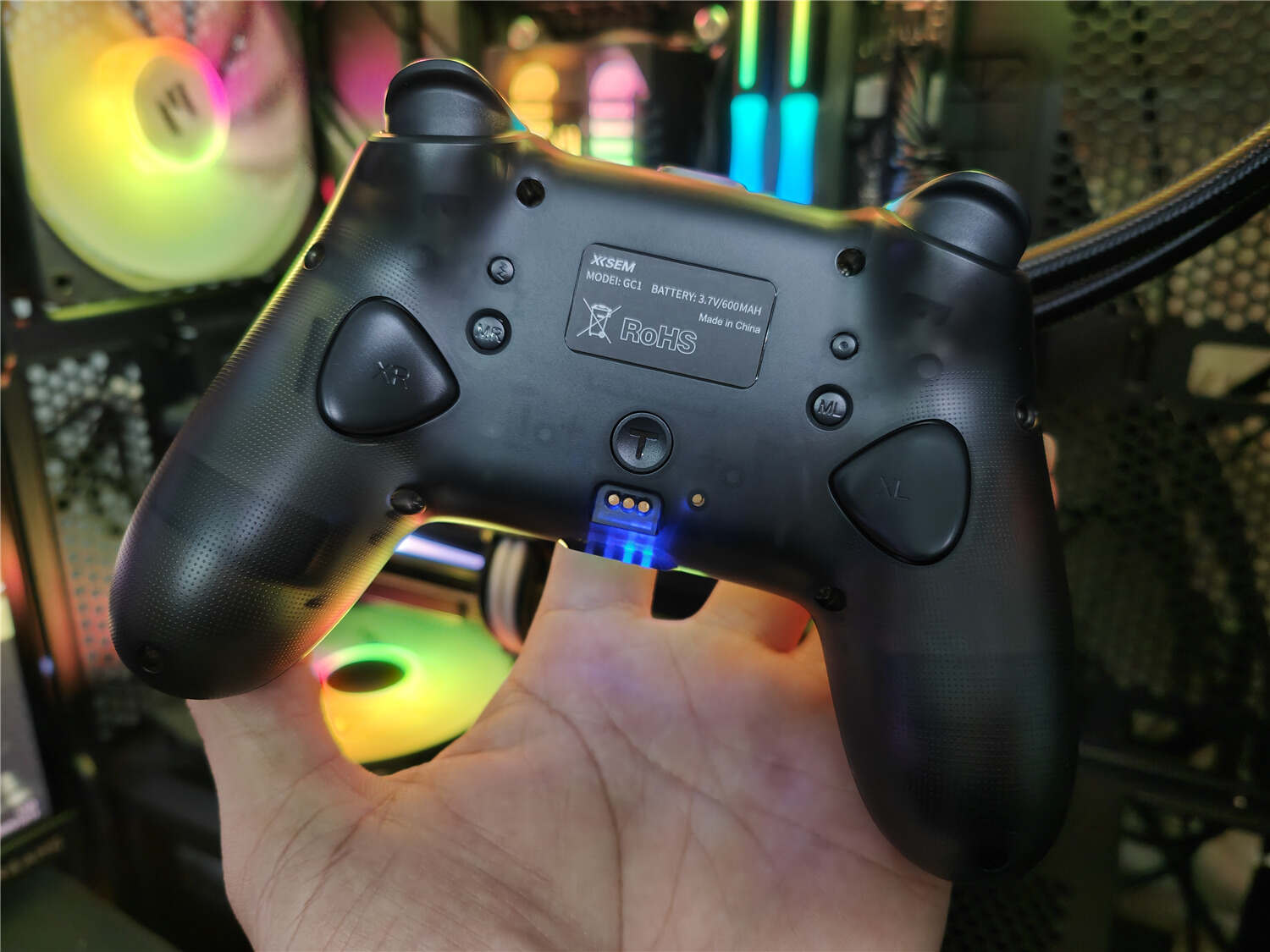 GC1在握持体验上的设计也别具一格。手柄机身采用轻量化设计,仅重214g,配合人体工学的握角设计和NanoSkin亲肤材质,提供了极佳的舒适感和稳定性。
