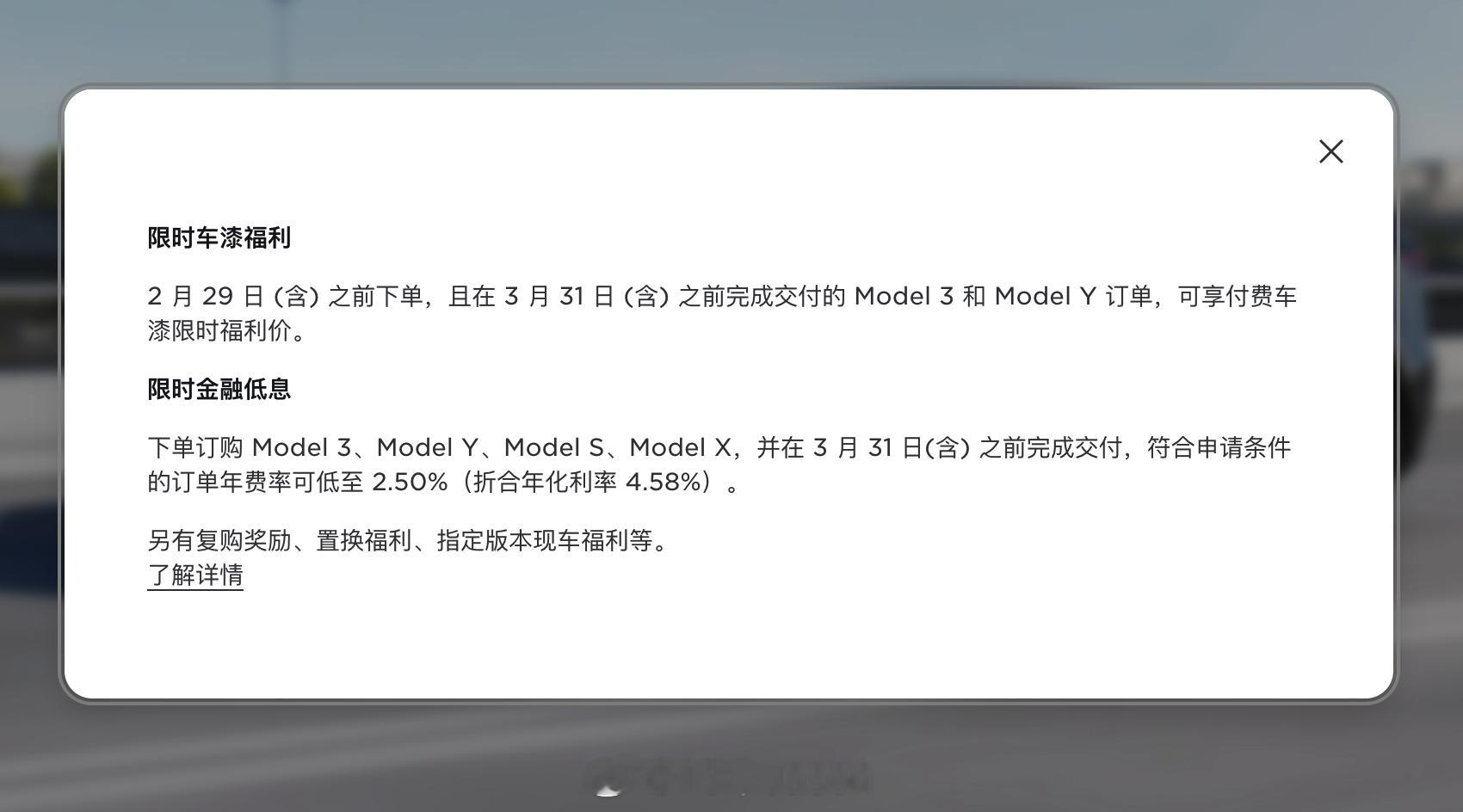 特斯拉中国还准备了「新春福利」,在 2 月 29 日(含)前下单,3 月 31 日(含)前完成交付的 Model Y/3 任意车型(含 Model Y 指定版本现车),可享所有付费车漆 2000 元(差价在交付前减免)。