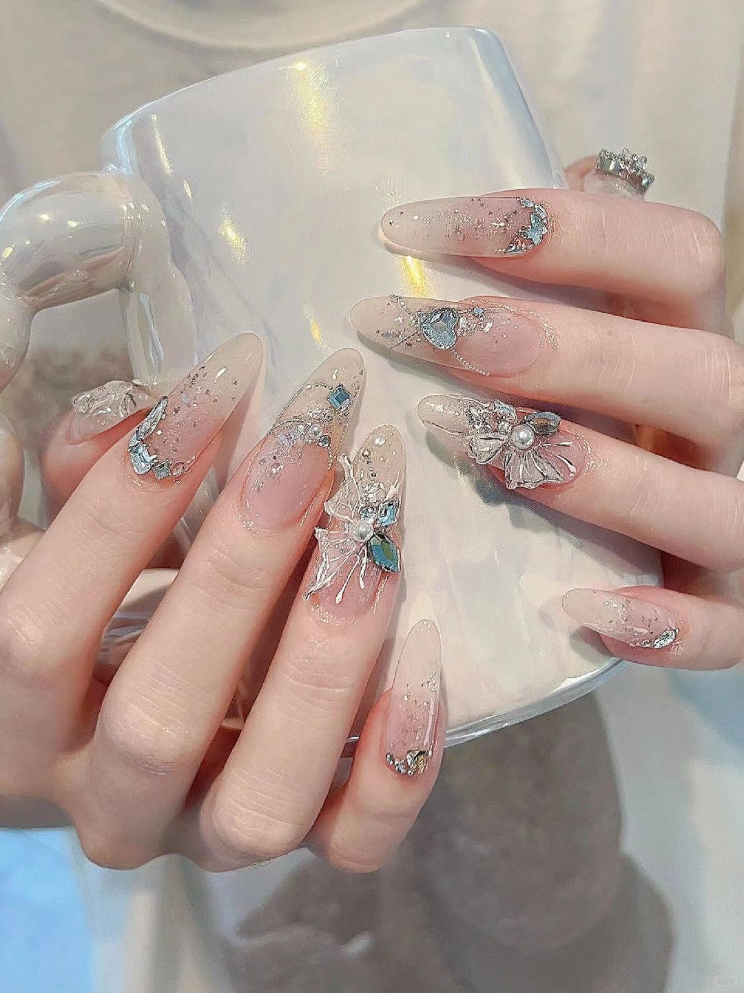 蝴蝶这种元素天然就带buff,把它结合到美甲上真的绝绝子,也能做出很多不同款式的蝴蝶美甲,水晶蝴蝶啊,猫眼,渐变蝴蝶,碎钻蝴蝶…等等,各位兔宝宝们选择一款适合自己的蝴蝶美甲,真的会仙气飘飘~~~反正击中我这颗直男的心——
