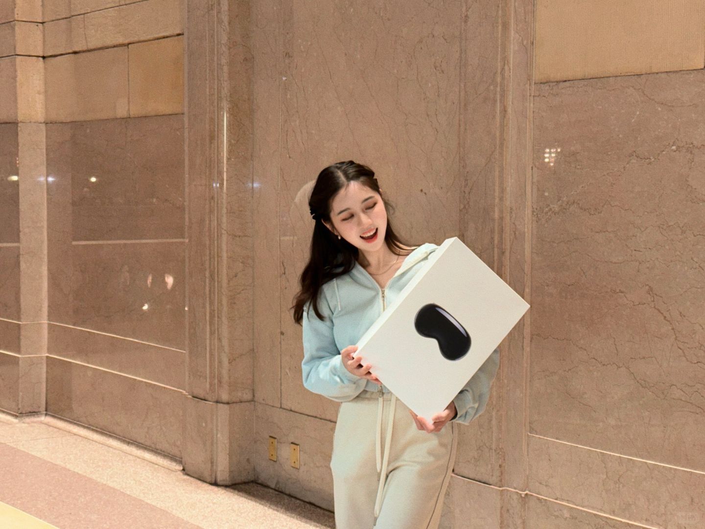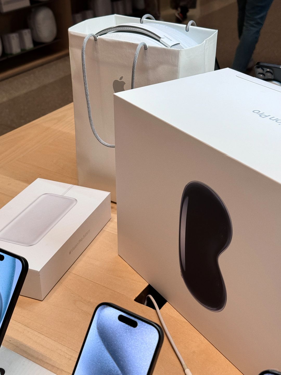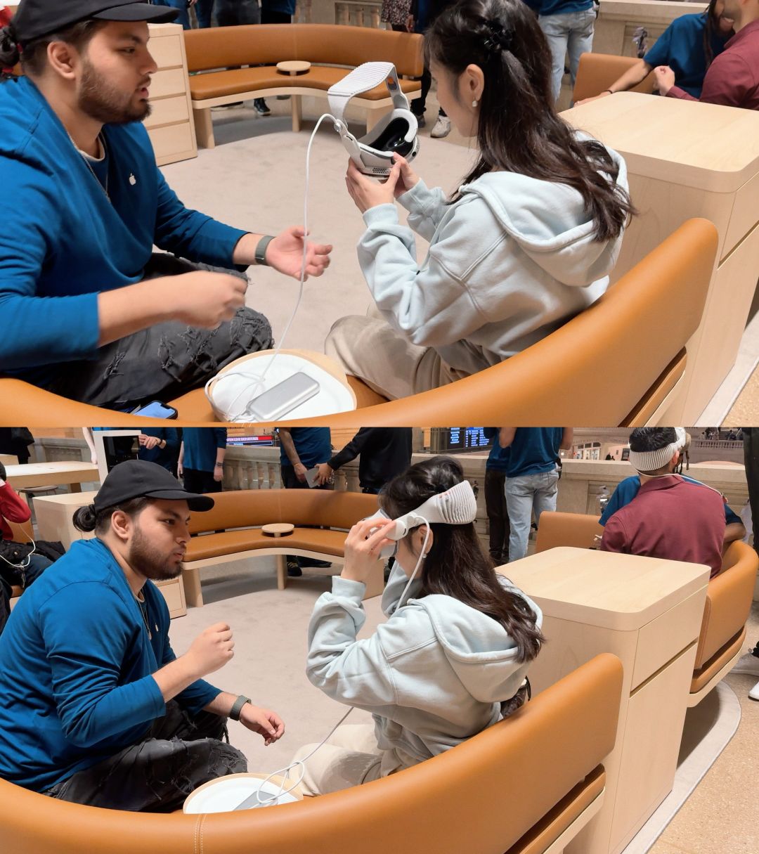 在纽约的店里感受Vision Pro演示啦!!! 取的时候可以直接约demo!Vision Pro戴着重量感觉还好,期待回到酒店后开箱体验!