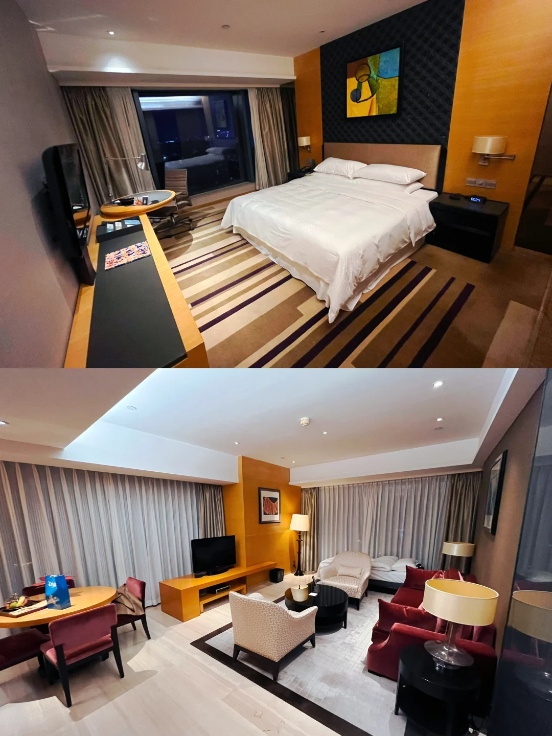 我们入住的是行政套房,套房面积比较大,加床可以住3个人也很宽敞,在24楼,房间是两面采光,视野非常好,天气晴好的时候可以看到广州塔-小蛮腰。到了晚上,夜景也是很不错的。