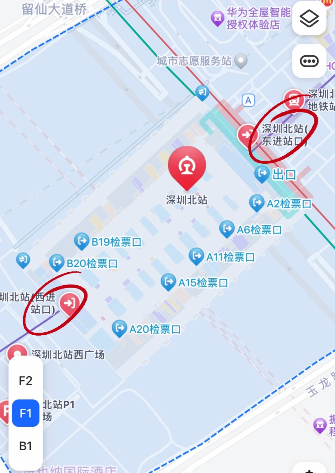 极限赶车‼️深圳北站快速进站🚄攻略 每次去北站,几乎都是踩点到 之前一直都是didi 或者坐地铁进站🚄 这次意外打到的士🚕,师傅说走东广场不用排队,就浅试了一把,果然‼️‼️‼️完全不塞 不用到停车场,不用上下电梯🛗,直接就是在东广场🉐️的士专用道下车,下车后直走左转就是进站口了!相对西广场人多些,但队伍找对了,还是非常快速,大概3分钟左右我就进去了 附赶车小攻略⚠️ 1⃣️坐地铁和打🚕都是东广场进;打车比如didi是在西广场,要预留塞车的时间 2⃣️排队记得走两边,人少p 3⃣️候车编号小的,如1-10,从东广场进;候车编号大的,如20-10,走西广场进。(参考图4) 4⃣️车厢数大,走B检票口,车厢数小走A‼️这里以去香港🇭🇰方向的举例,不同方向可以相反