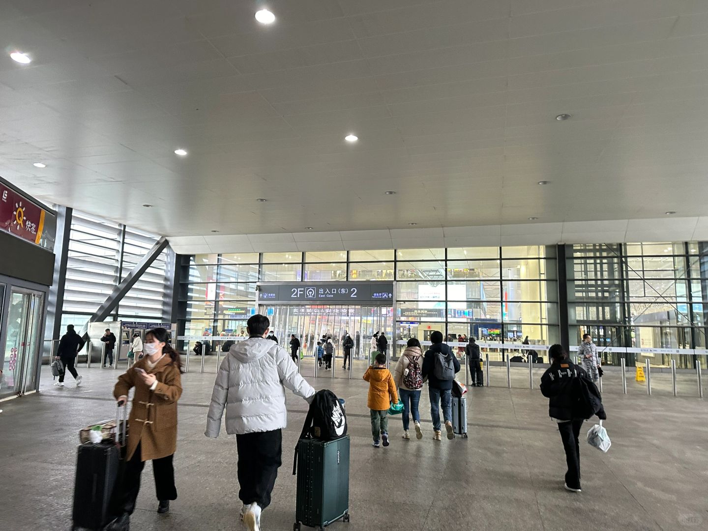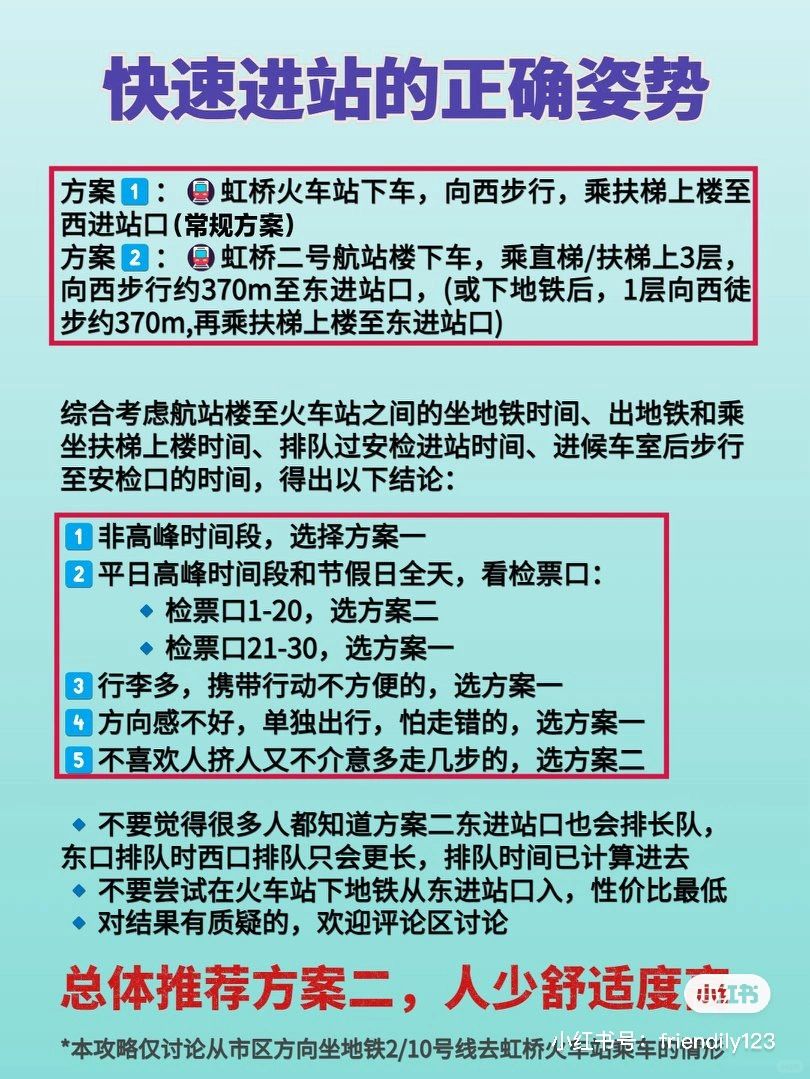 以下流程闲逛缓慢走路用时12min(因为我不赶时间所以比较悠闲)⬇️ 进来是1检票口 所以适合小号进站口(1-20) 大号进站口看p6(存的图) 1️⃣虹桥机场2号航站楼下车 只有一个出站口 直接出站就行(用时1min) 2️⃣走到p2的直梯上3楼 大概排了两辆电梯排到 p2就是我排的时候前面的人(用时5min)旁边就是扶梯 赶时间不想直梯排队可以直接上去 3️⃣直梯出来回头跟着p3火车标识走 共会走过三个横的那种电梯 但只有一个开着❗️ 不知道剩下两个是坏了还是没开(用时5min) 4️⃣走到头是p4 5️⃣进站安检完全没人 p5是排队情况(用时1min)
