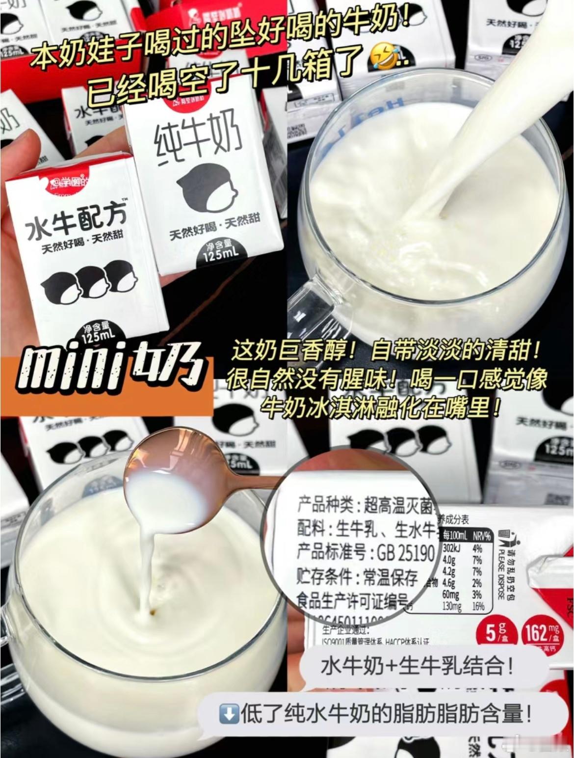 喝空了十几箱的牛奶,巨香醇!自带清甜,很自然没有腥味!喝一口感觉像牛奶冰淇淋融化在嘴里!生牛乳和水牛奶结合得恰到好处,而且四了纯水牛奶的脂月方含量!