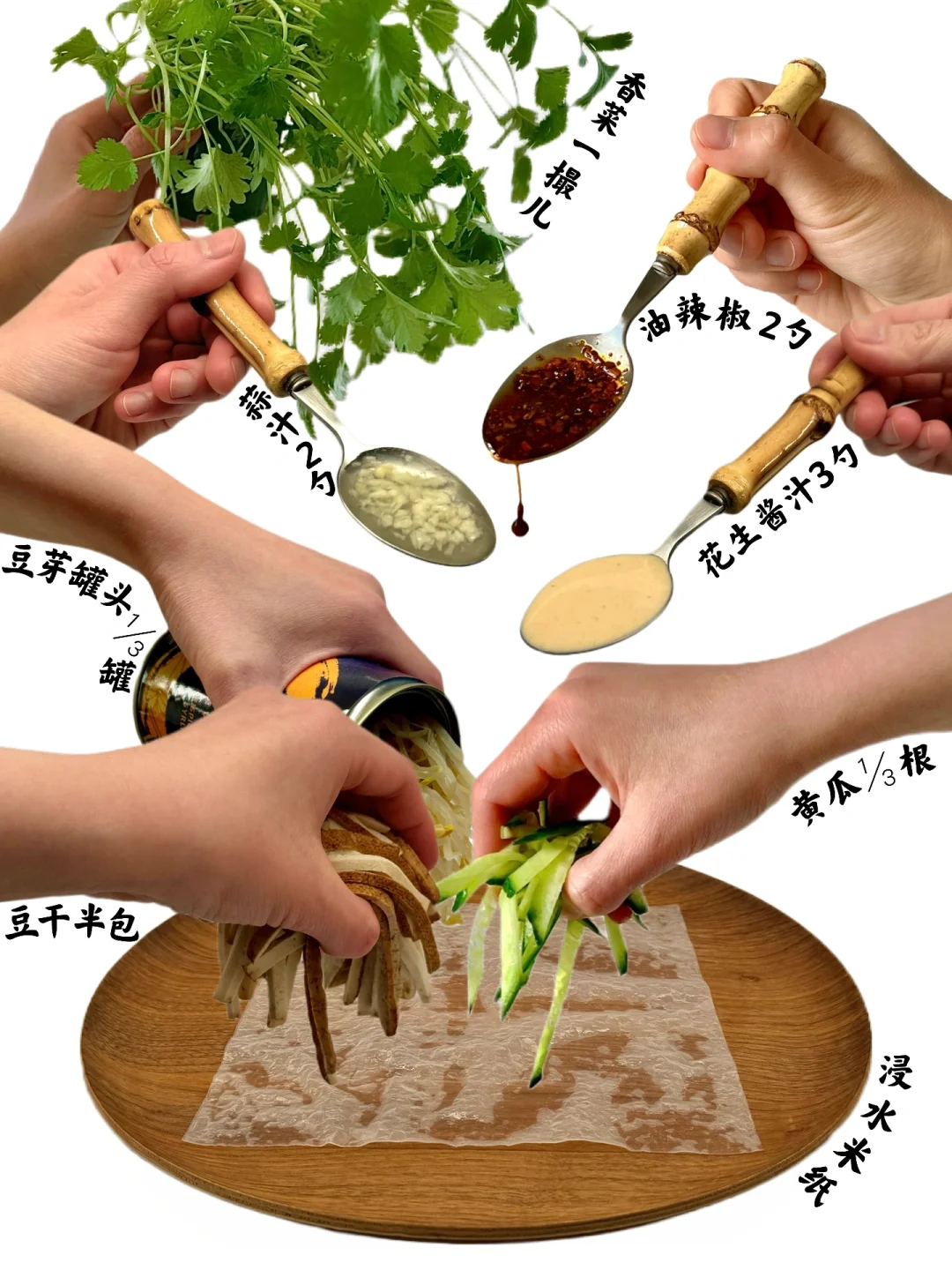 越南米纸做卷凉皮是真的太🉑了[赞R] 方便实惠又好吃! 👉Tips 调味料🉑根据个人口味调整 有香醋也🉑加点 盐烤花生米喜欢也🉑加(坚果零食区有售) 辣椒料🉑按喜好挑选 也🉑改用自制的辣椒油 放自制辣椒油🉐再加盐和味精调味 🔔敲黑板 米纸硬或口感太劲道 是由于水不够或还没浸透 🉑在两张米纸叠起来后在表面淋些水 等米纸浸透后再卷 ⚠️注意 豆芽罐头🉐先沥干水再放 花生酱汁不要太稀 不然容易漏