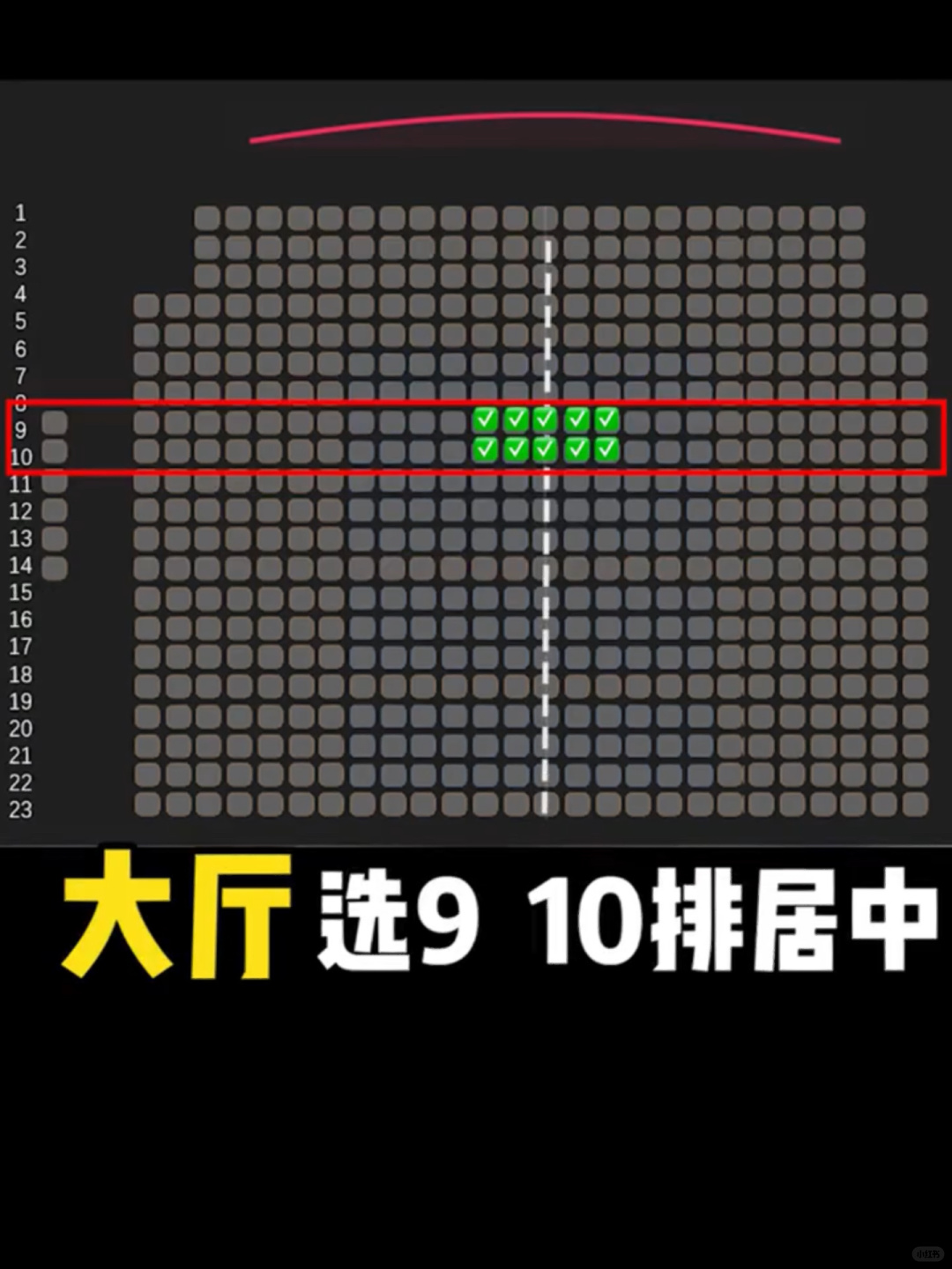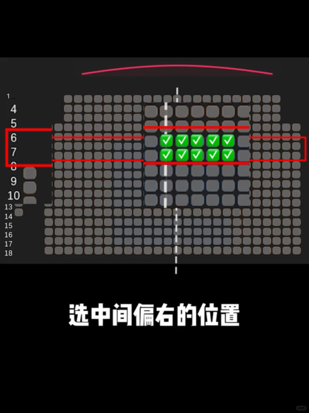 电影院的帝王位|电影怎么看最舒服? 不想看完电影脖子酸痛,或者整场下来连人脸都没有看清,就选这些座位。 根据美国电影电视协会调查统计,水平视角大于等于36度,仰角小于35度,这个范围的座位不仅可以全方在看电影,又不会给颈椎造成太大压力。 所以看2D电影时,小厅就选五六排居中, 中厅七八排居中, 大厅九、十排居中, 如果是IMAX影厅,帝王位永远是第七排,动作大厅除了前三排不行,尽量靠前坐,这样代入感会更强。