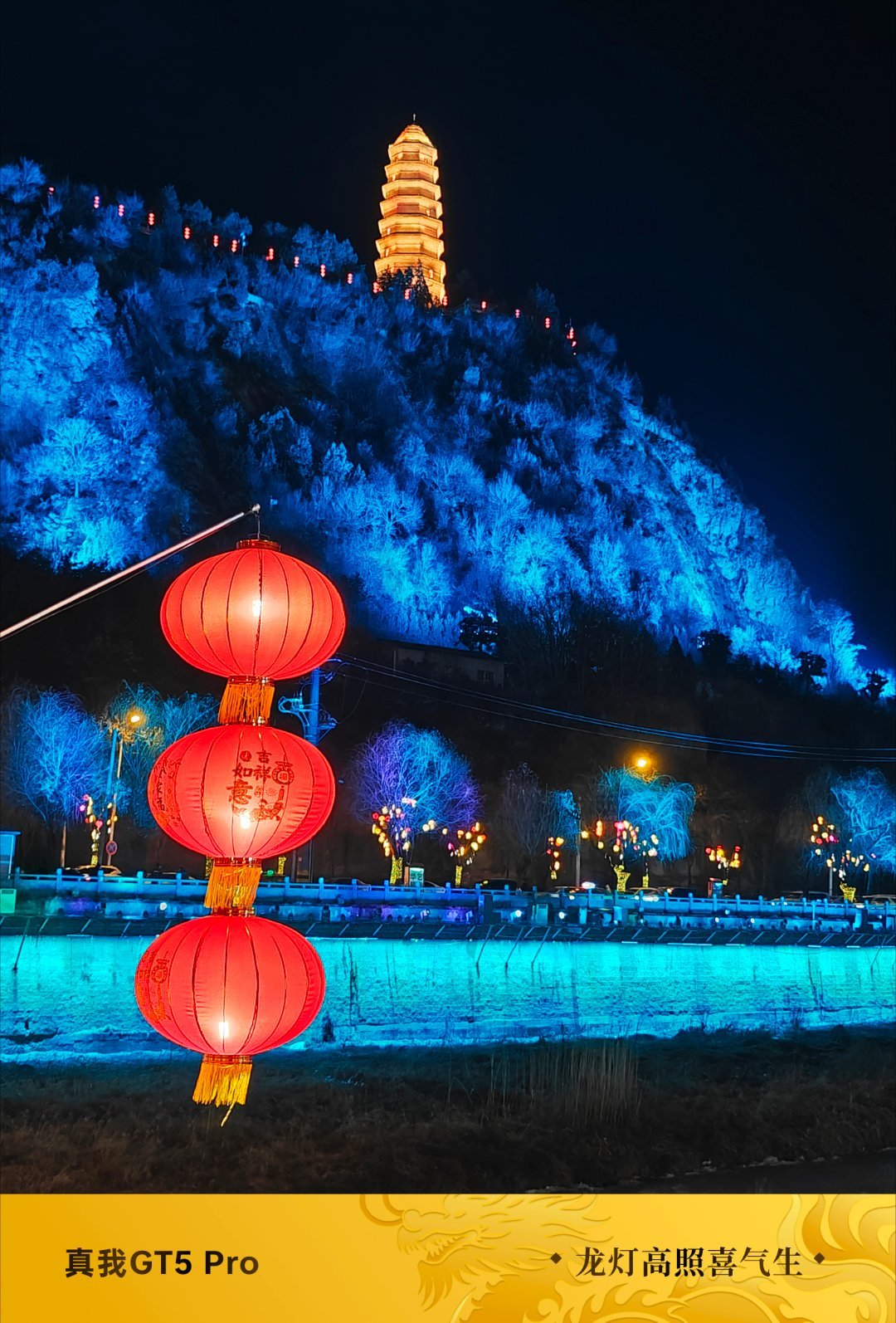 延安的年夜挺冷的,宝塔山下延河边,音乐律动,灯光璀璨。