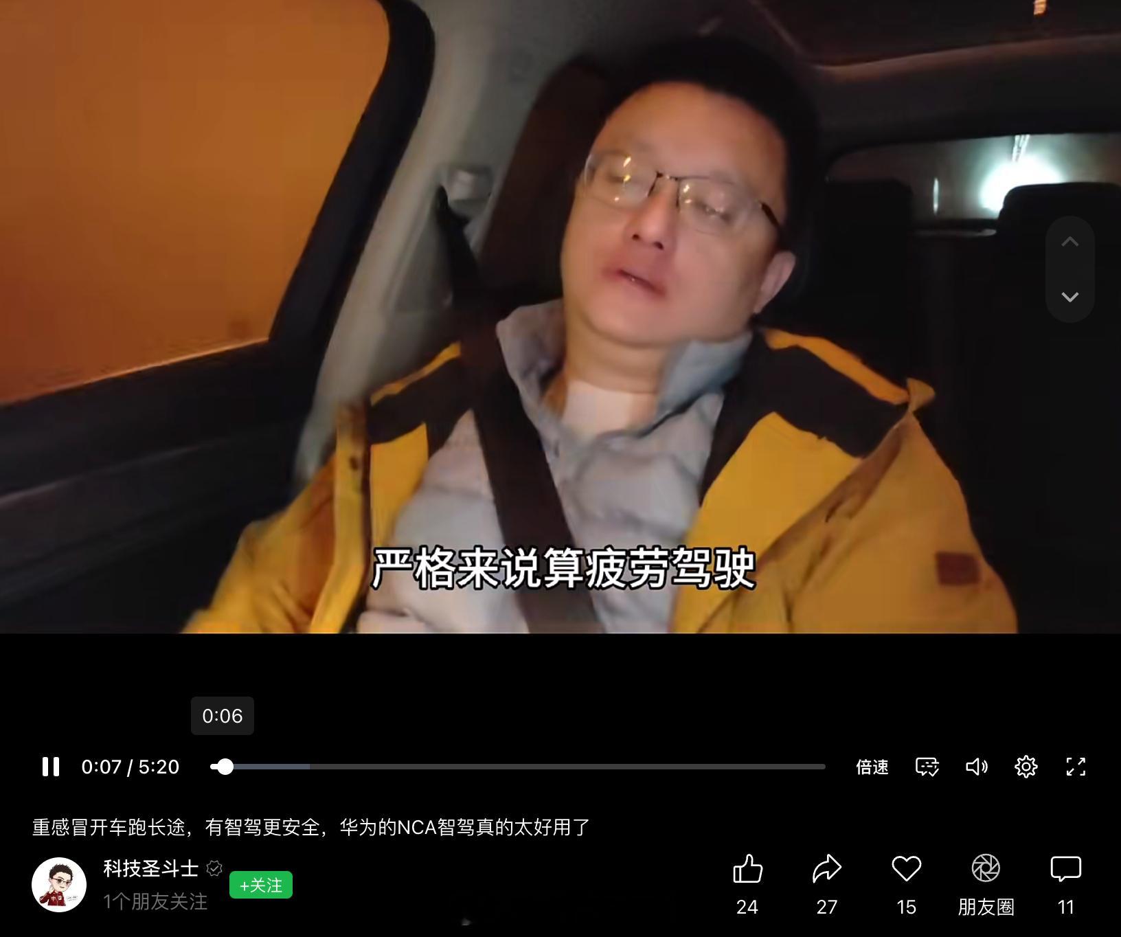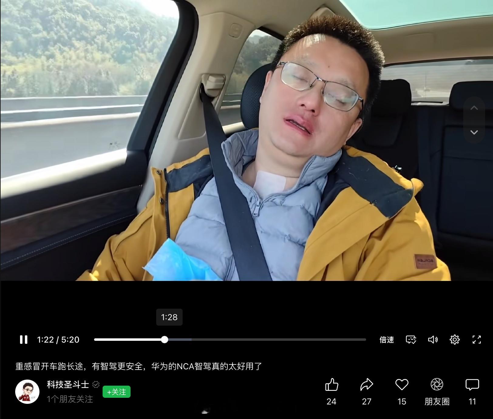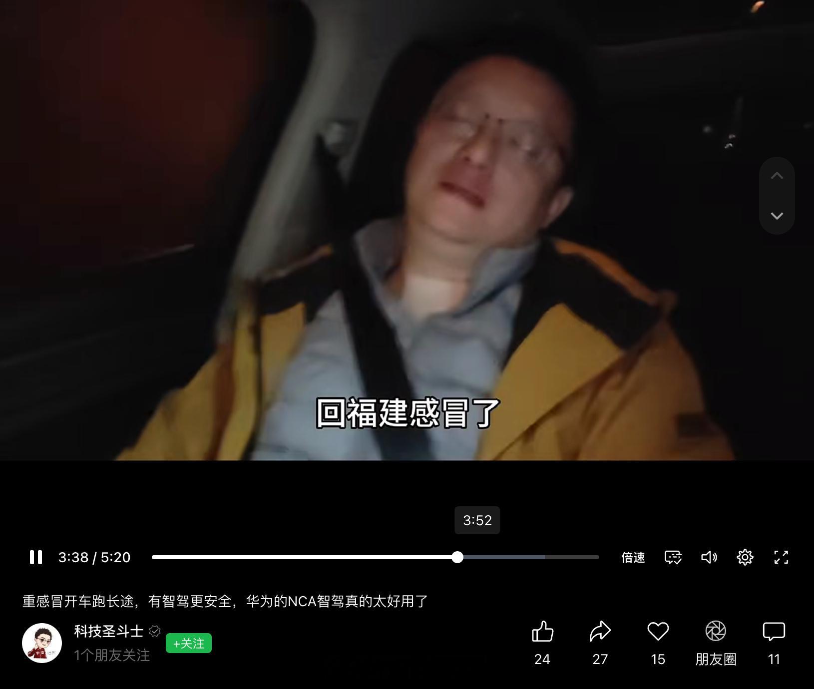 看到这位媒体老师发视频说自己重感冒,还闭着眼双手离开方向盘地开智驾…有点无语,自