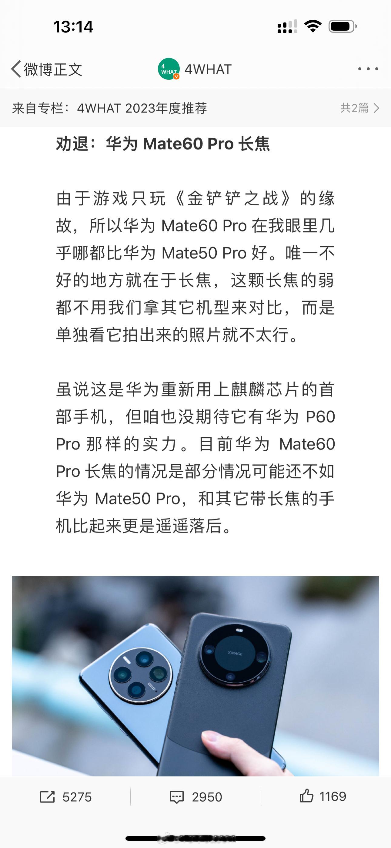 后来的 Mate60 系列回归了许多麒麟独有的智慧能力,但影像方面却没法追回 P60 系列的表现,尤其是长焦,差强人意都不能满足,只能说有长焦,但不够好用。