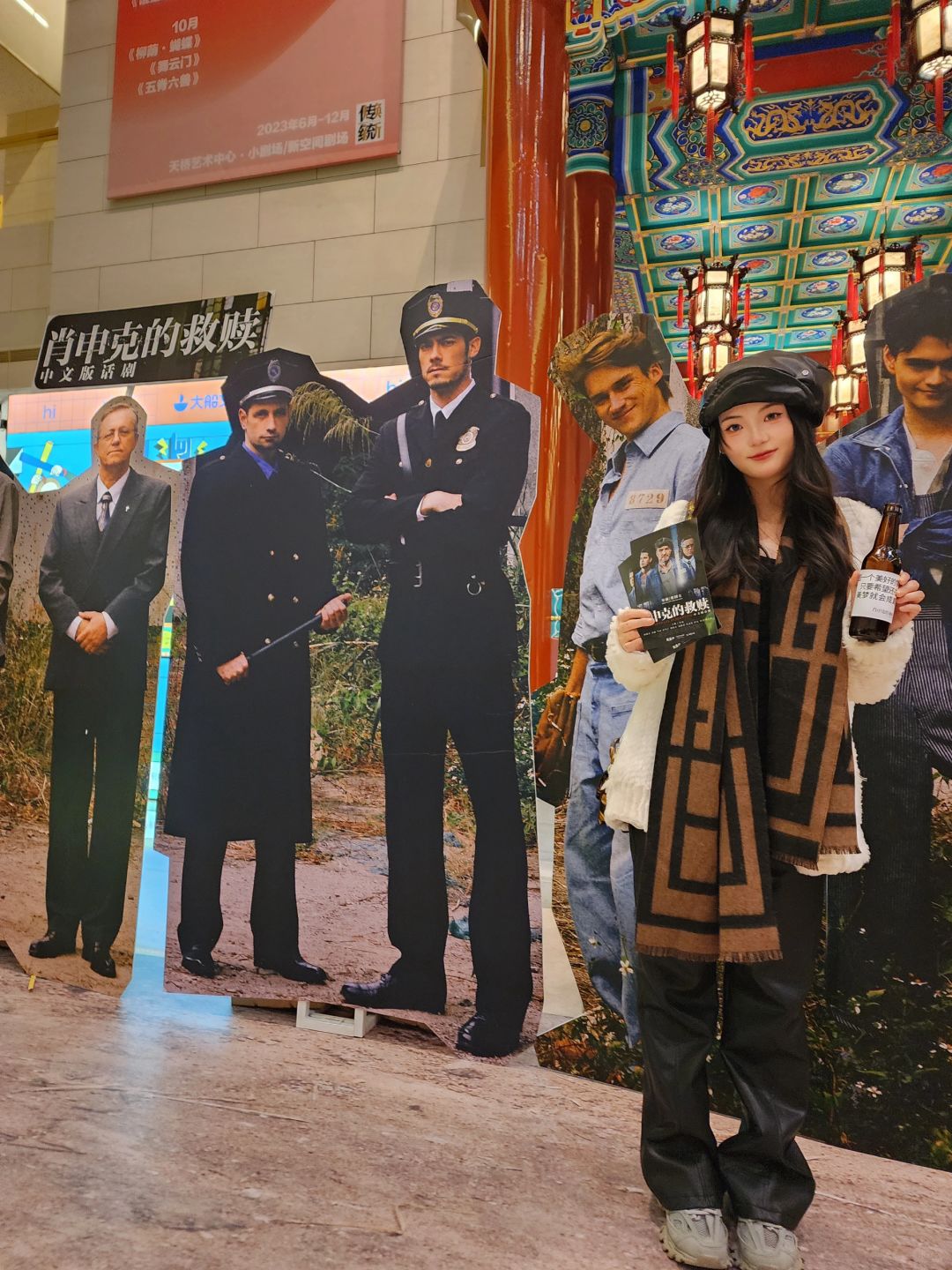 之前看过排练花絮,现场看到很多片段演员们表演的更成熟了,有种养成系的感觉;关于老外演中文版话剧,现场观众被典狱长的北京话即兴发挥和几个歇后语逗笑;从门口背景板前摆放的台词啤酒瓶到入场口送给观众的周边,能看出剧组很关注细节,
