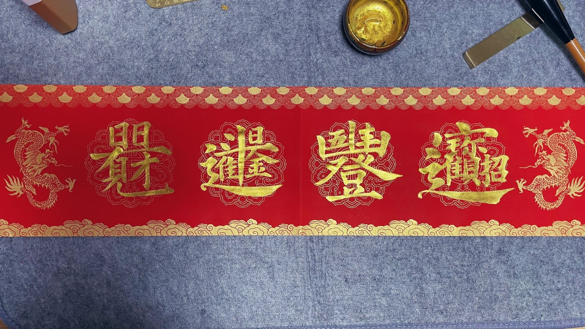 小红书上能人多,学到了一幅合字对联。 横批:招财进宝,五谷丰登,日进斗金,日日有 财 上下联: 八方来财,欢聚一堂,吉星高照,黄金万两,四 季平安,马到成功,年年有余; 金玉满堂,一帆风顺,三羊开泰,紫气东来,五 福临门,十全十美,吉祥如意