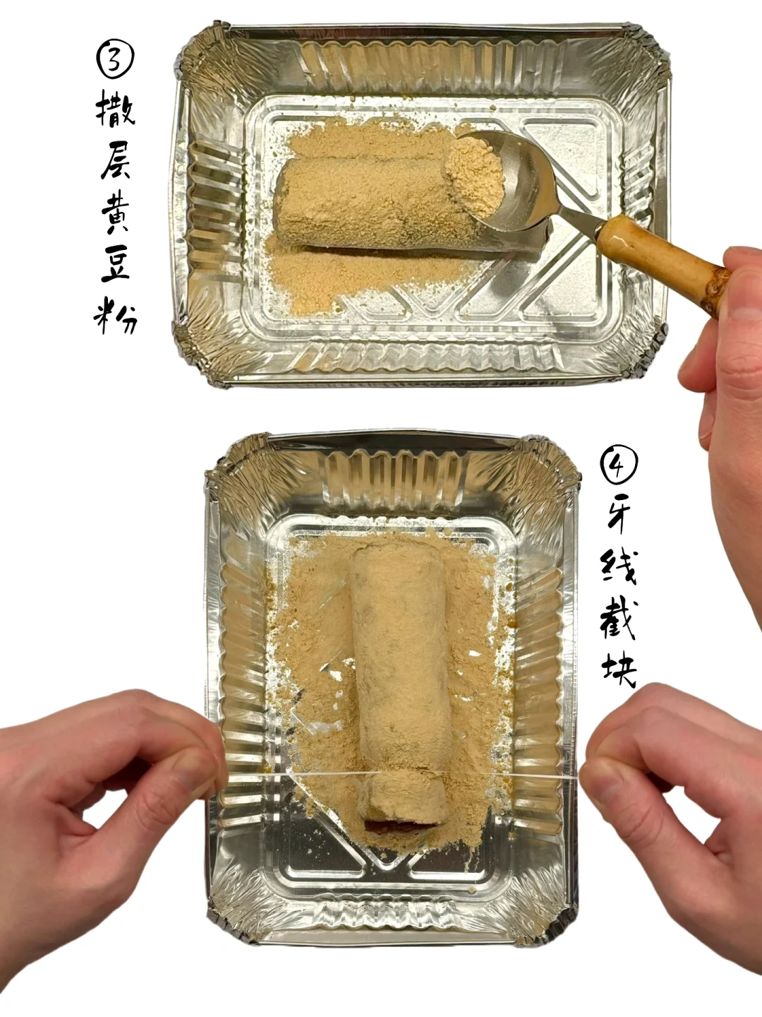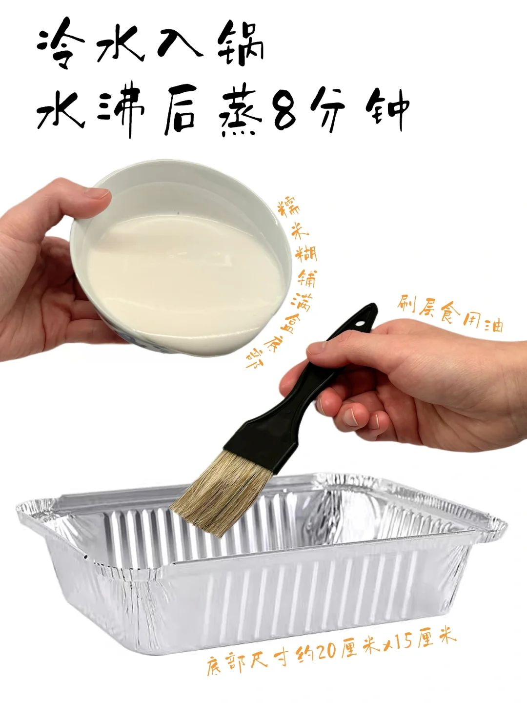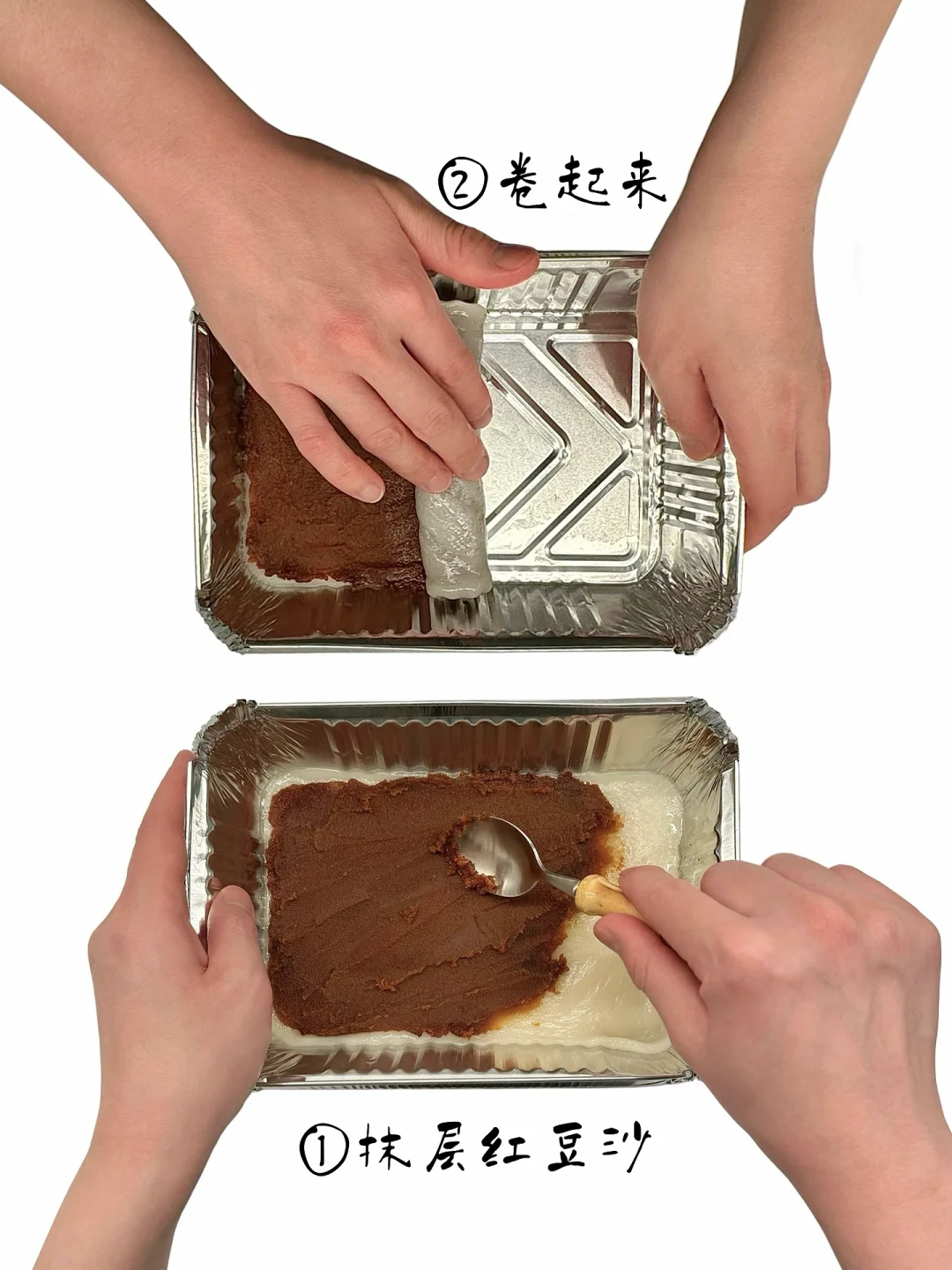 做法省事又简单 不光不用揉面❗️ 弄完了厨房也是干干净净‼️ 👉Tips 锡纸盒、玻璃饭盒或盘子均🉑 在容器内壁刷层油🉑更易脱模 油🉑稍微多刷一点 没刷子🉑倒点油在盒里用手或厨房纸涂匀 卷成卷儿时手上沾些水🉑防粘手 用牙线或缝线截块均🉑 喜欢软糯口感🉑稍微多加点水 喜欢口感Q弹🉑稍微少加点水 糯米糊多放点蒸出来🉐糯米皮厚 糯米糊少放点蒸出来🉐糯米皮薄 👉不成熟的小建议 图款红豆沙很甜 可以少放点 ♻️环保意识还是有的 锡纸盒用水冲净残留的黄豆粉后🉑重复使用