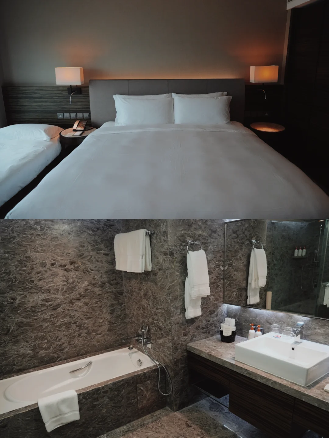 我们住的是豪华海景房,一进房间就很惊艳,落地窗能看到维多利亚的风景,而且在香港来说,房间面积已经很大了,尤其是卫生间、干湿分离,有智能马桶和浴缸🛁,白天出去逛累了,晚上泡个澡,很舒服!