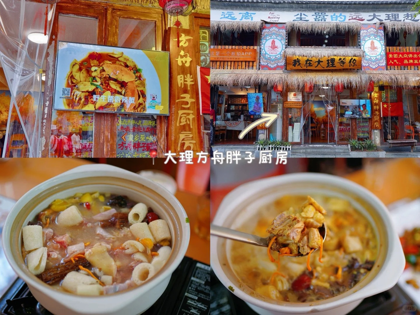 另外推荐给大家推荐上次去吃的大理美食 📍大理方舟胖子厨房 二楼感受一番苍山绝美的视角,菌汤锅味道很鲜美,各种野生菌种类超丰富,喝起来清甜鲜美,打卡了傣味手抓饭也很赞! 🏠大理住宿 住古城里面就方便得多,方舟沐宅客栈就在里面,可以感受一下慢悠悠的古城风情~