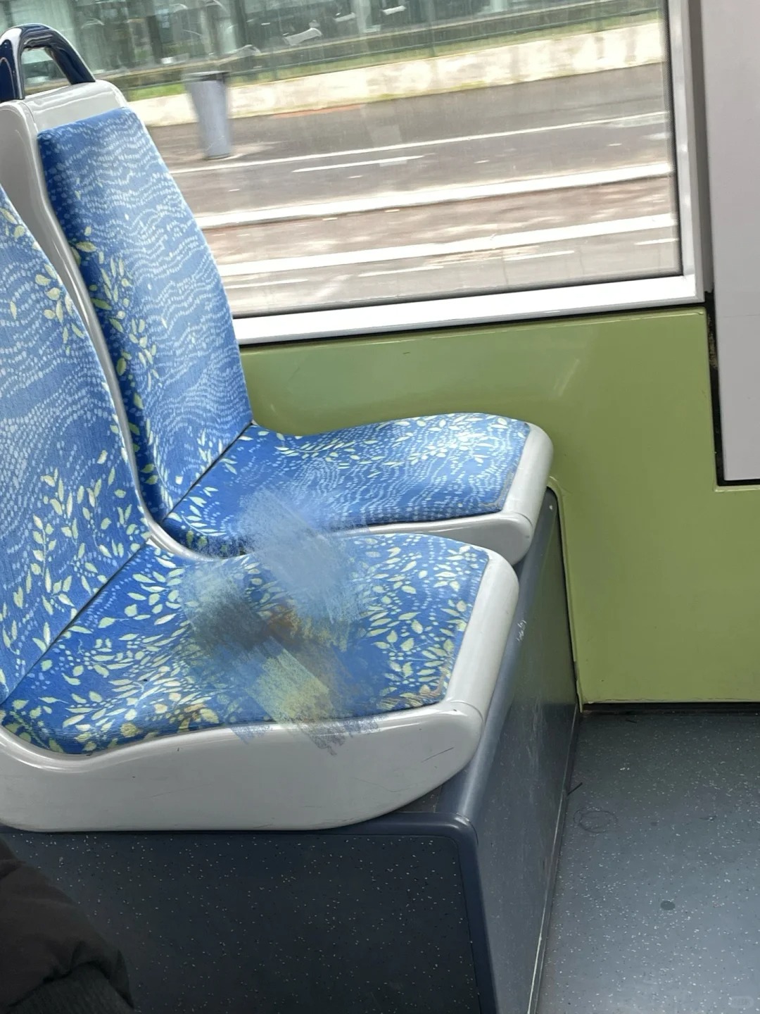 建议大家坐公共交通还是小心点。突然觉得国内那种塑料椅子才是真的神,脏了拿水冲就行。