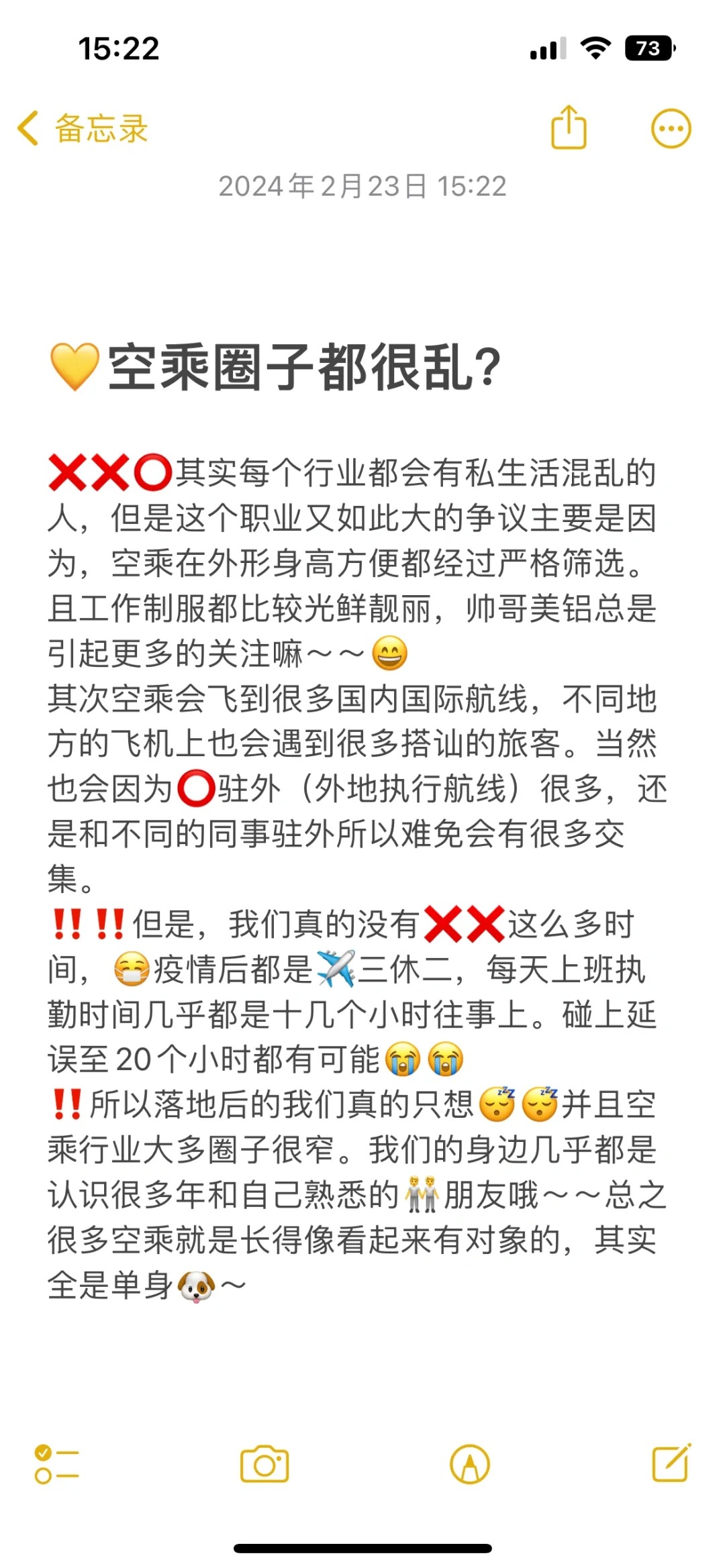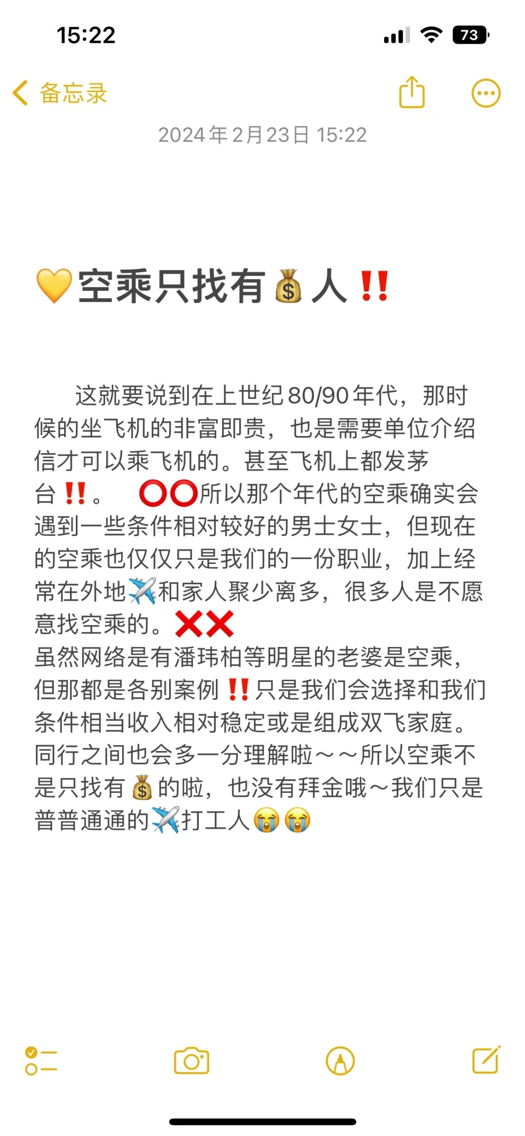 空乘圈都很乱‼私生活大揭秘‼️‼️ 你们空姐只找有钱人?你们工资好几万吧!空姐空少都很乱吧!你是否也听过或者也是保持这样的观点,并且想知道真相呢?‼️作为✈️7年任职过大/中型航司空姐。 ➡️➡️左滑➡️➡️在线辟谣‼️