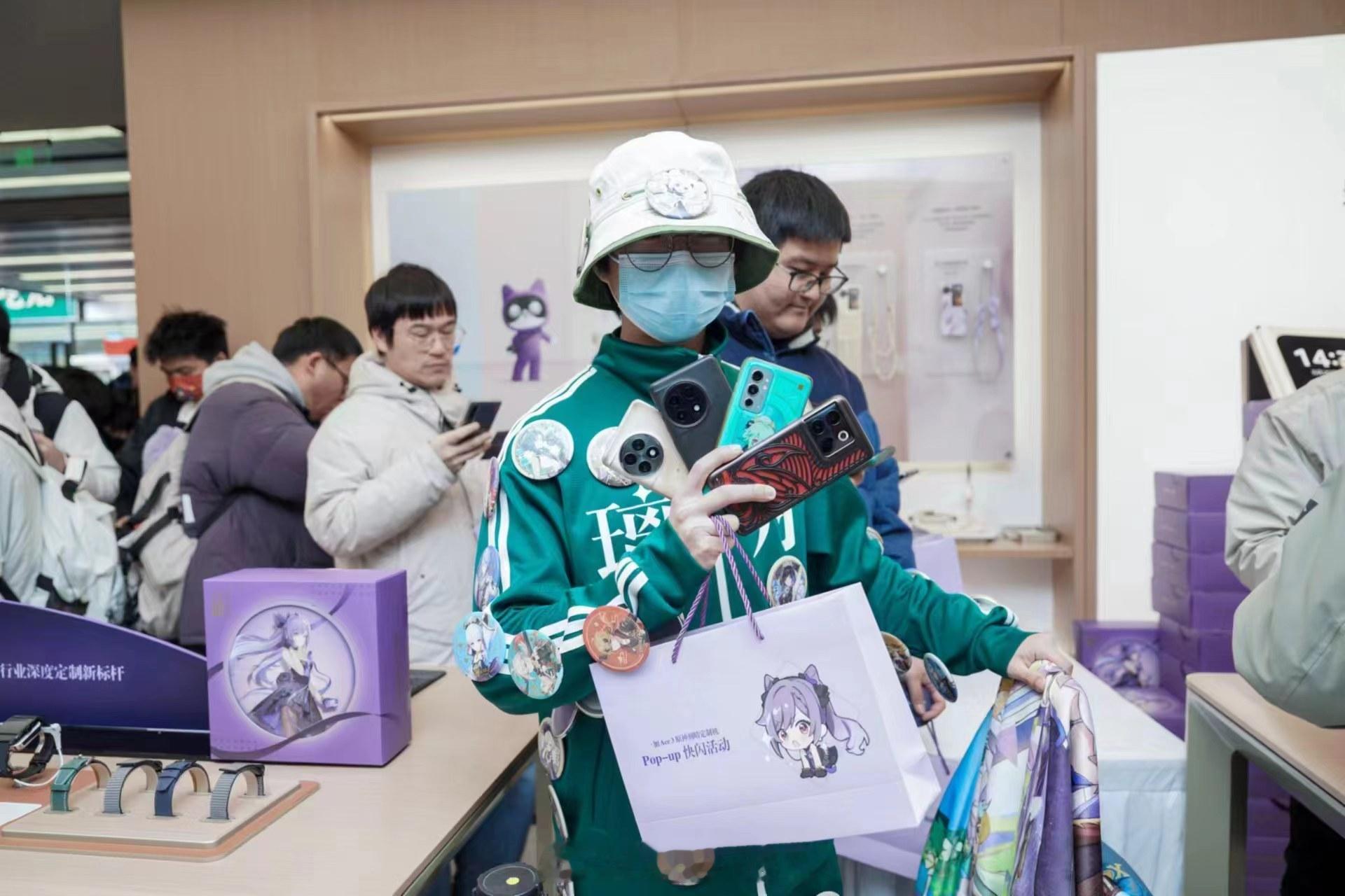 据说今天去线下参与 PopUp 的人依旧很多,一加 Ace3 原神刻晴定制版也依