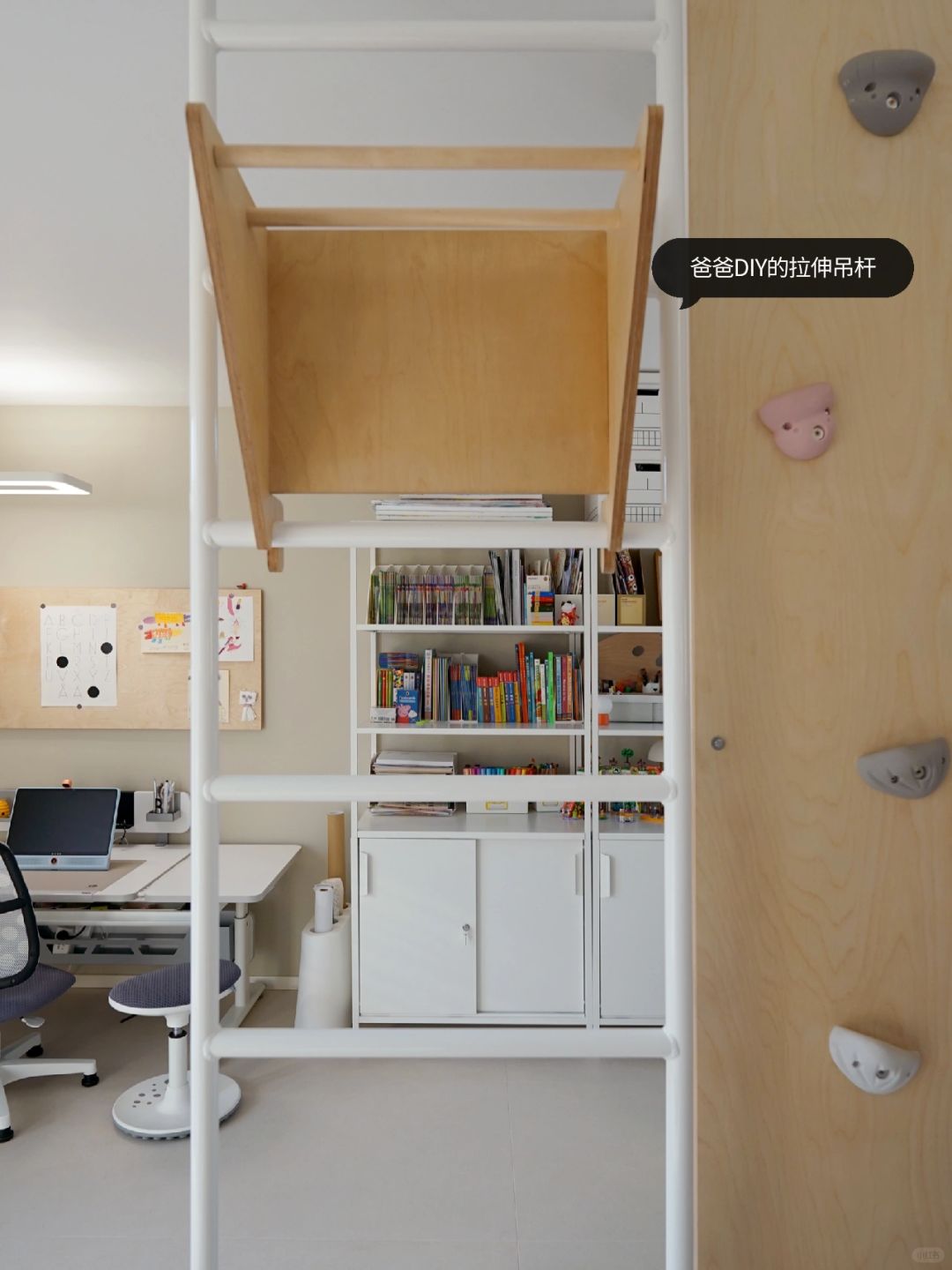 女儿的小书房,可以攀岩可以吊着拉伸,都是爸爸给她diy的,她也给3岁的鼠鼠🐭diy了一座商场😄