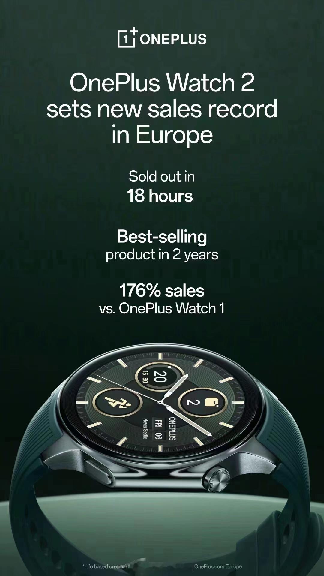 而 Oneplus Watch 2在欧洲也同步刷新销售纪录,开售 18 小时即告售罄,被誉为是「近两年最畅销的产品」。