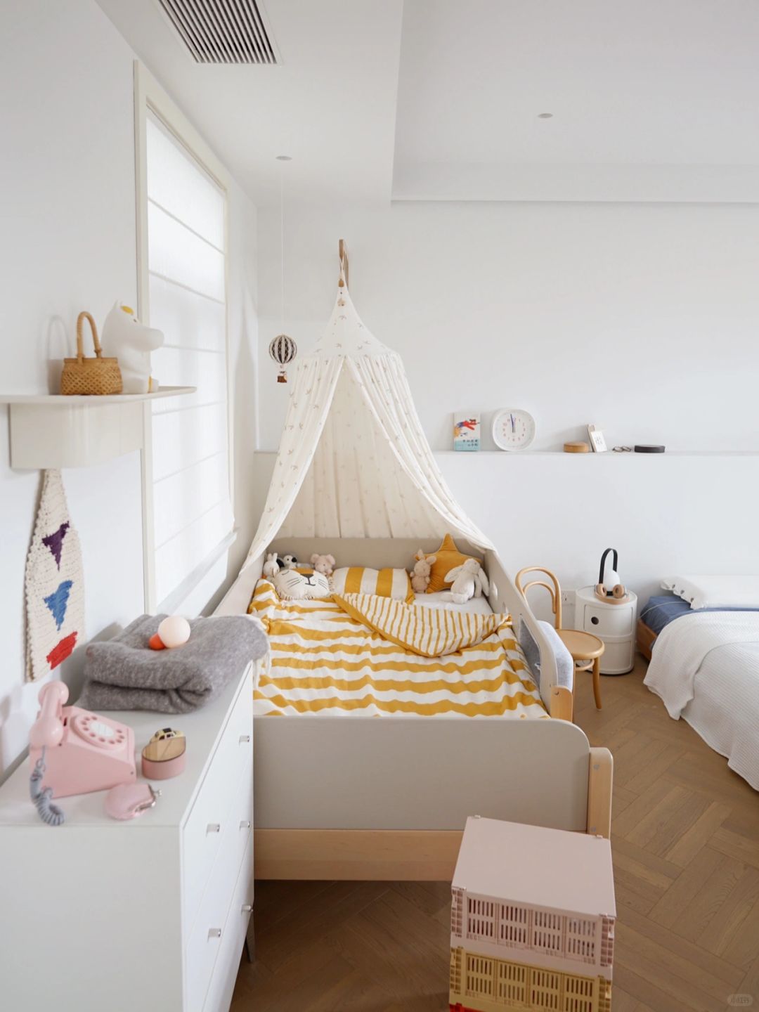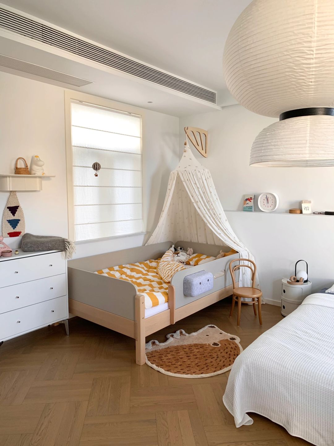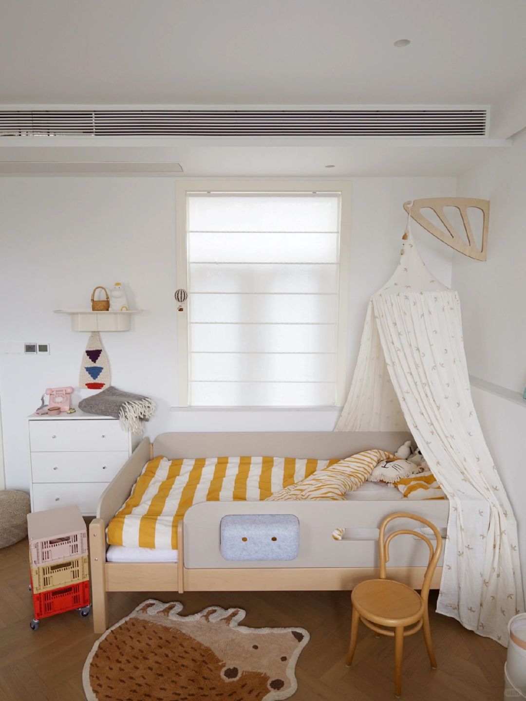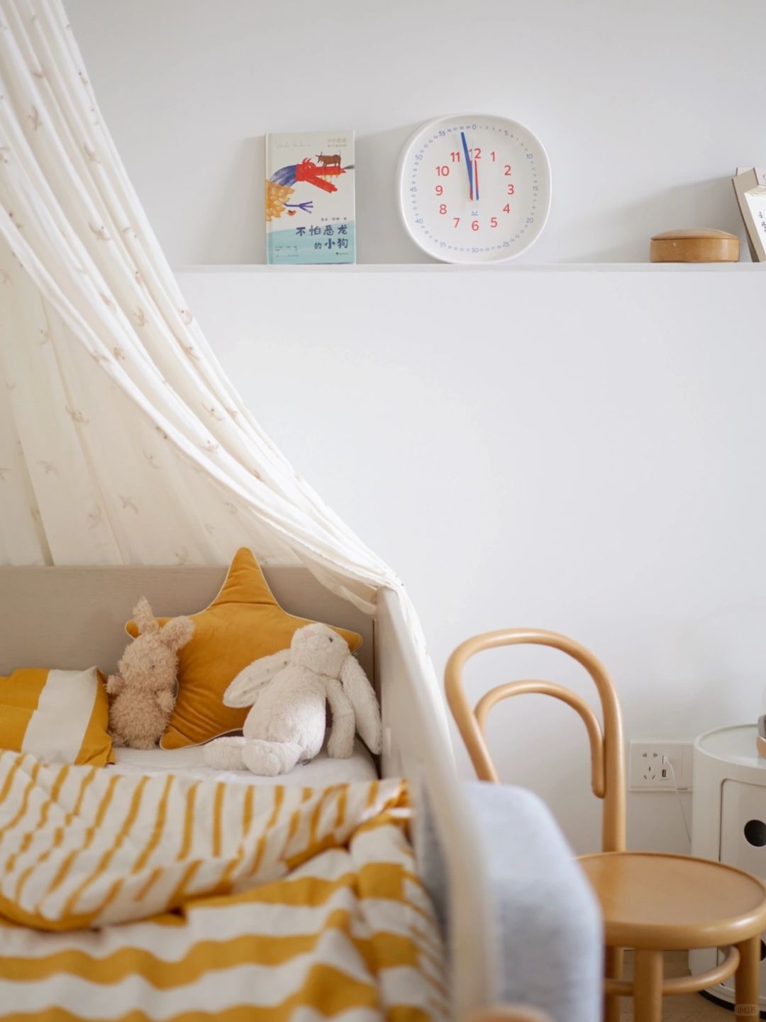 其实这也不是儿童房,是我们的主卧一角,原本放着的是80*160cm的小床,那只小床已经睡了整3年了。