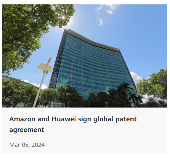 《华为与 vivo、亚马逊签订全球专利交叉许可》