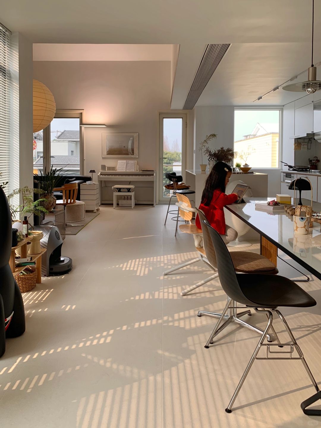 早上爸爸送女儿上幼儿园,她说这么美的太阳,妈妈看不到太可惜了(我崴脚了这两天不接送她),但是宝贝儿,家里的夕阳也不错呀