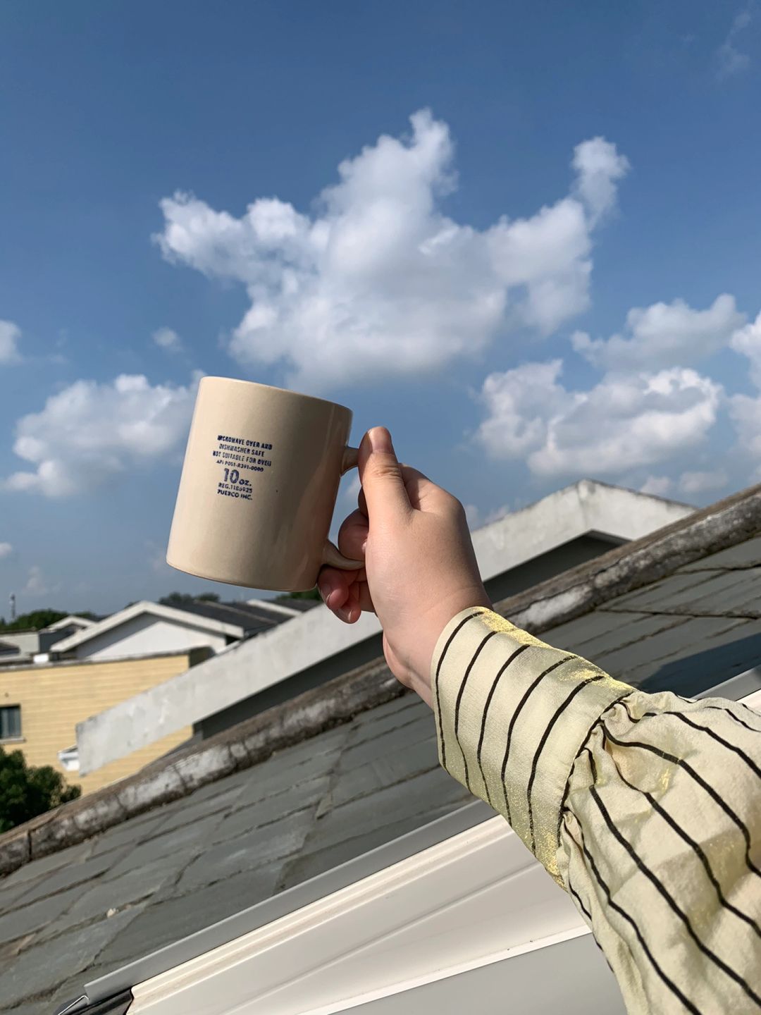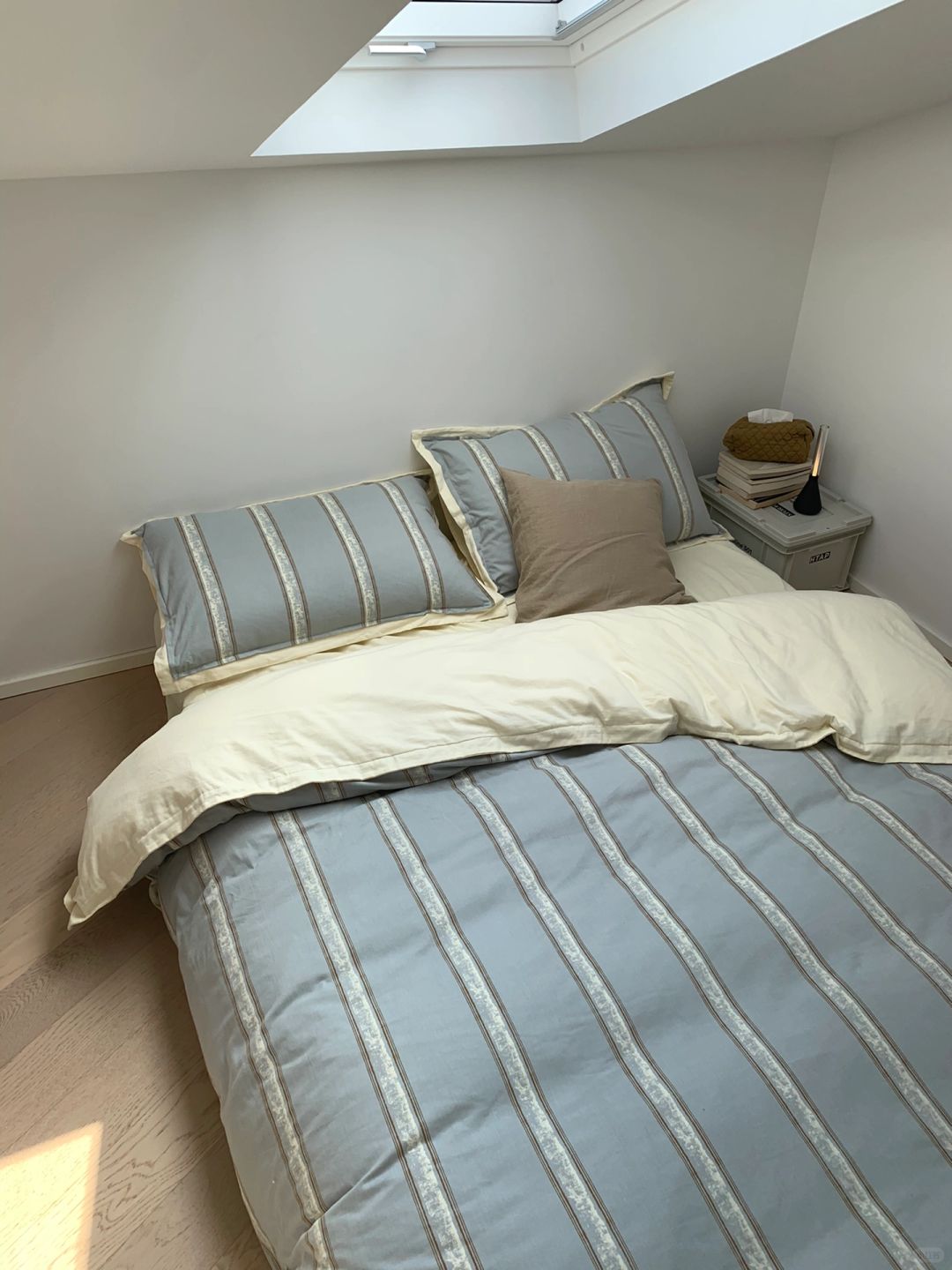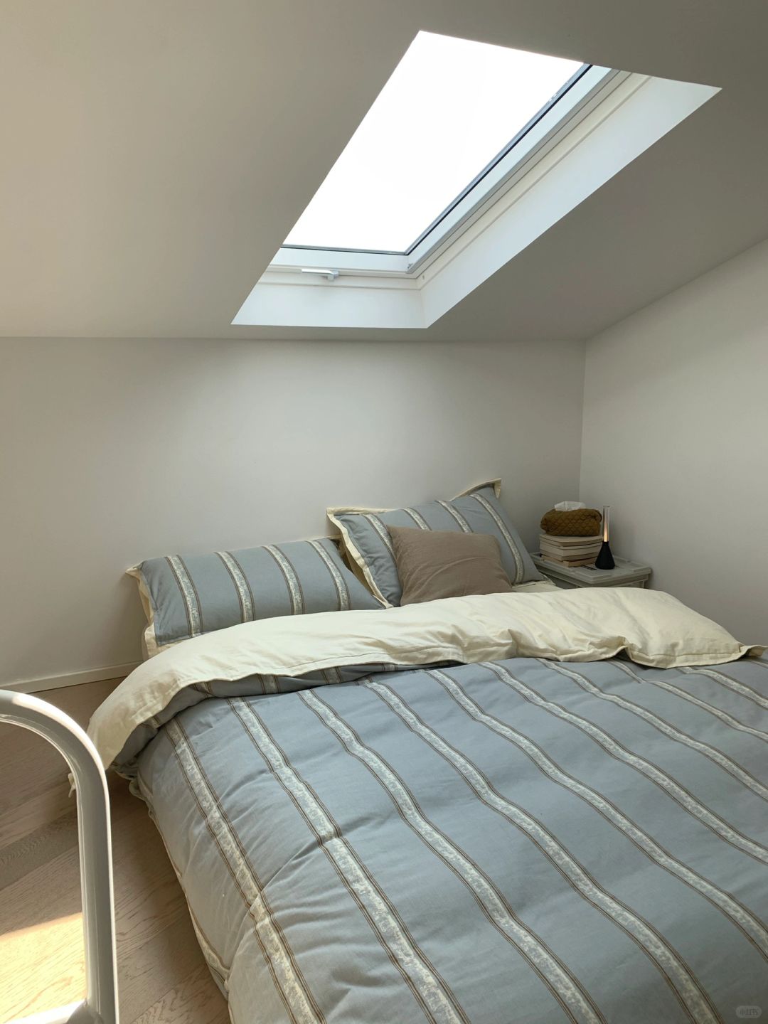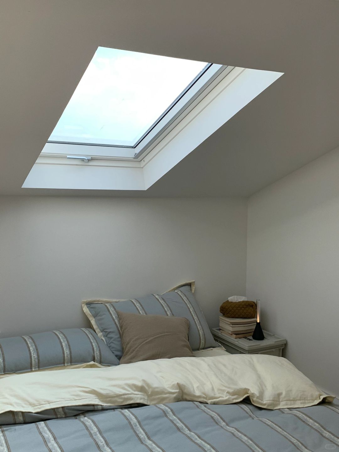 趁着出太阳🌞,来阁楼晒晒快发霉的自己,朝南的小天窗真的可以晒足一整天,感觉今天卧室颜色和蓝天好搭💙💛